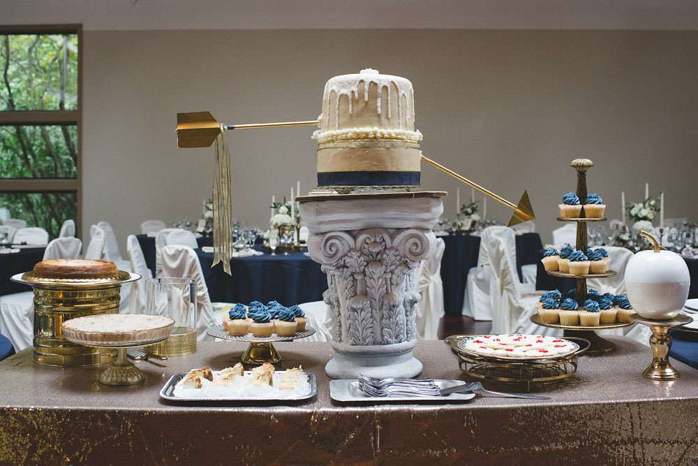“Our catering was also unique. We didn’t want the typical buffet or sit down mean so when everyone entered the reception we had the room centred around a huge food display with beautiful canapés and a dessert bar. Then later, we served gourmet tacos!”