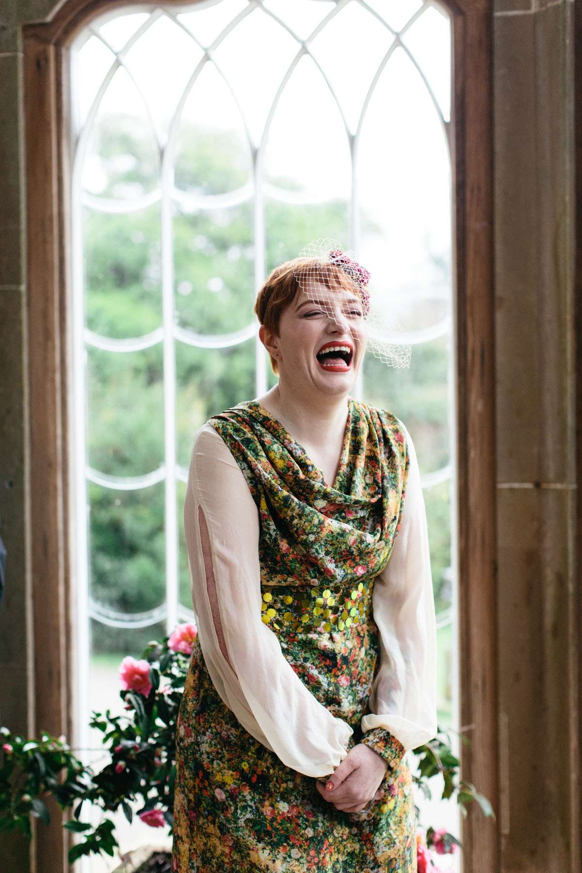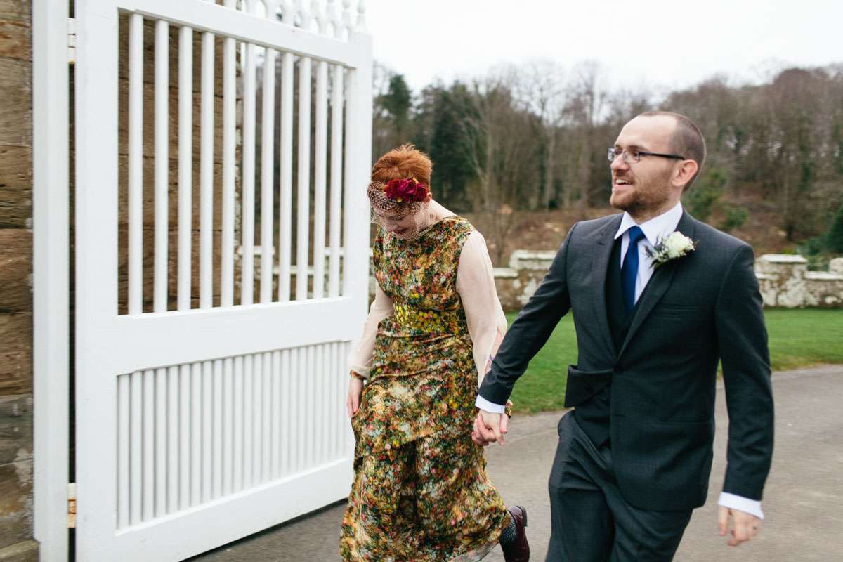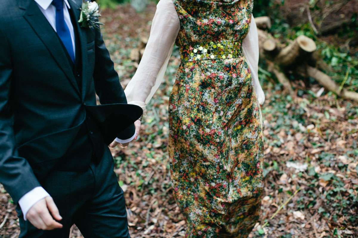 The bride’s incredible non-wedding dress was Vivienne Westwood which she had altered by adding the sleeves and some sequins! She wore comfortable brogues and a custom made headpiece. “I tried some wedding dress shops but just couldn’t find anything I liked”, she said, “so I looked online and then went shopping with my bridesmaids. I had already looked at some great Vivienne Westwood patterns so we headed straight there. I loved the dress the minute I saw it and bought it there and then. I then took it to Fabricated Bridal Alterations. They added the sleeves, created cuffs from some of the belt material, did a few shaping alterations and added the sequins to the belt. They are a fabulous bunch and did an amazing job.”