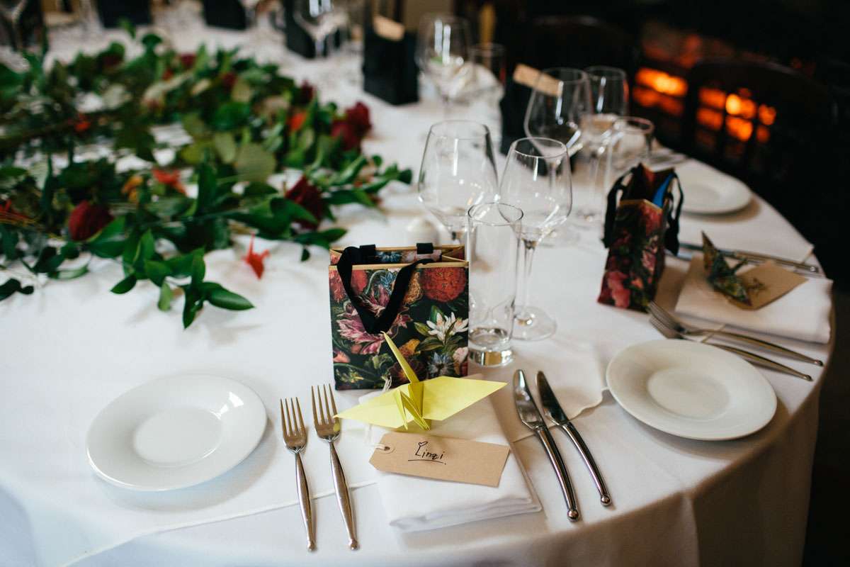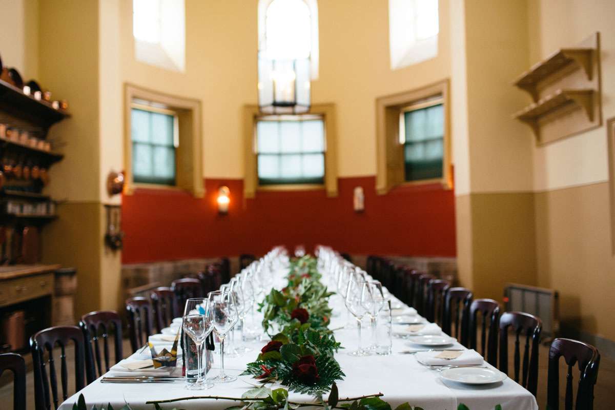“One the tables the best men and I lay roses and greenery with candles and some cranes. It was so easy but looked amazing. We didn’t do any other decorating in the Georgian Kitchen because the room itself was amazing. I loved all the copper pots.”