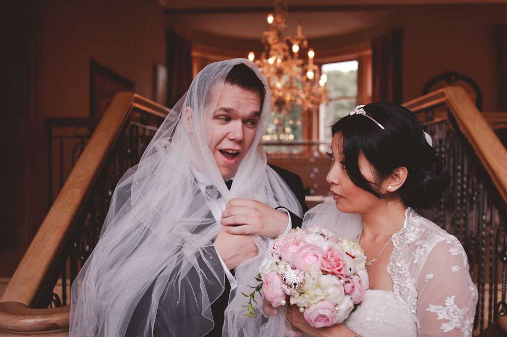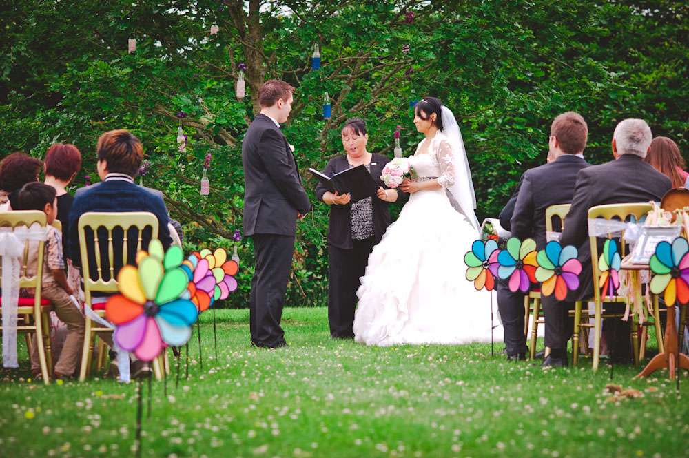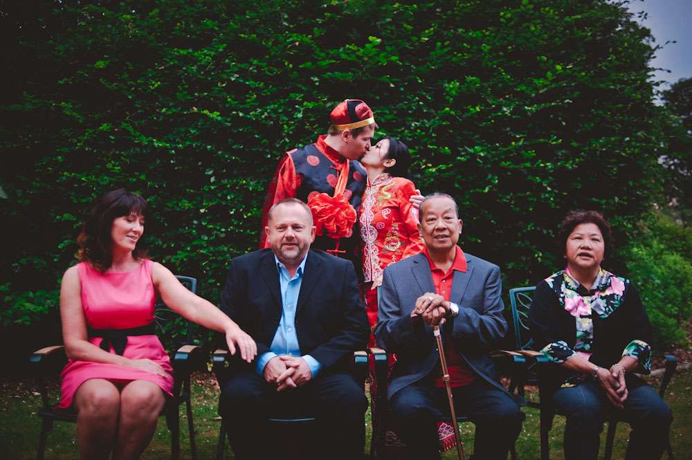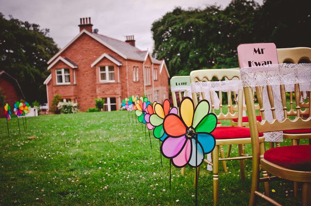 “The ceremony itself was also carried out in three different languages – English by the celebrant with members of the family translating into Polish and Cantonese. We originally planned to have the ceremony outside, and set it all up with DIY rainbow decorations, but halfway through it started raining really badly so we moved inside and finished off in the entrance hall!”