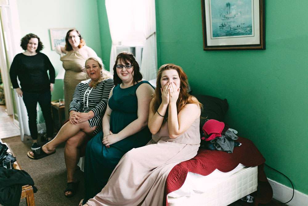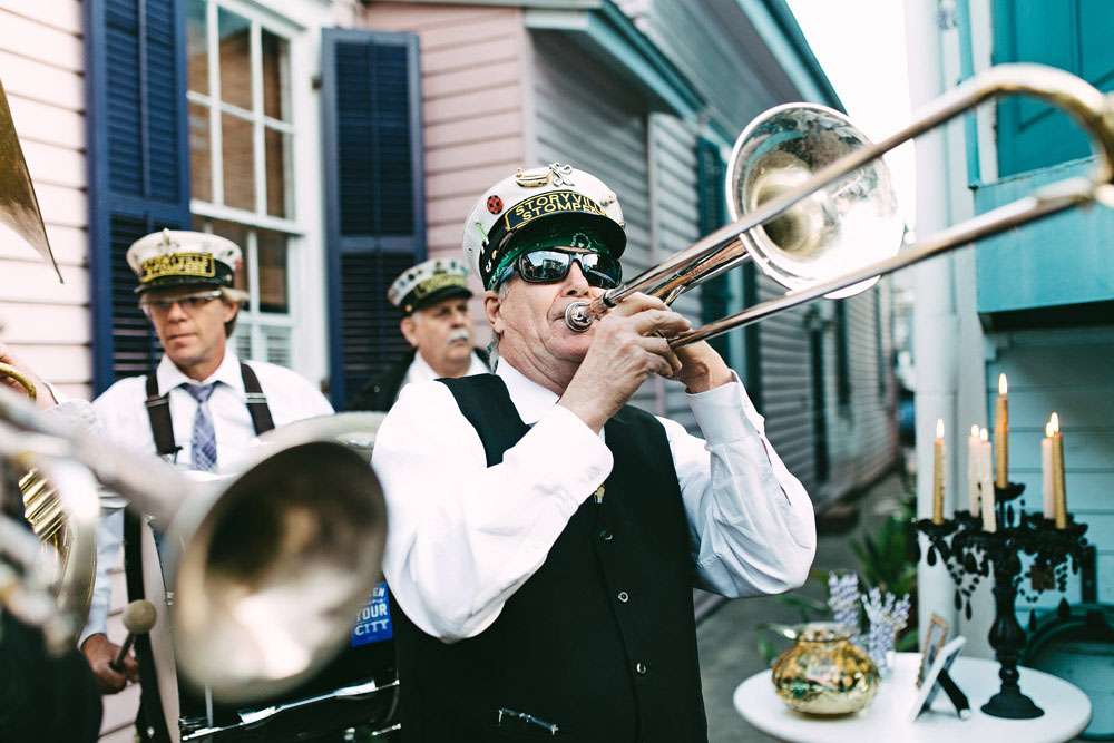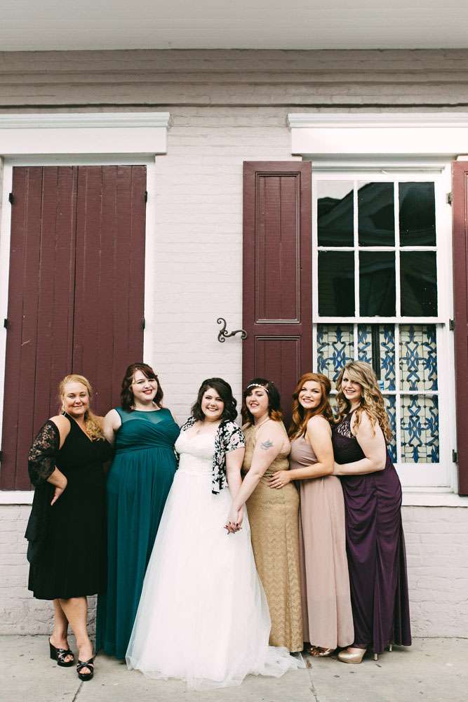 The ceremony took place at Gentry House, a bed and breakfast where they also all stayed. Afterwards the Storyville Stompers Brass Band accompanied the entire wedding party to their reception venue, Vacherie restaurant. “Our ceremony was really special”, she said, “and we wrote our own vows. However hands down, the brass band was THE BEST part of our day. Specifically, seeing my grandmother, who had recently battled and won a fight against breast cancer, march (with much swagger I must say) in that parade!!! However, Wesley’s vows were a close second.”