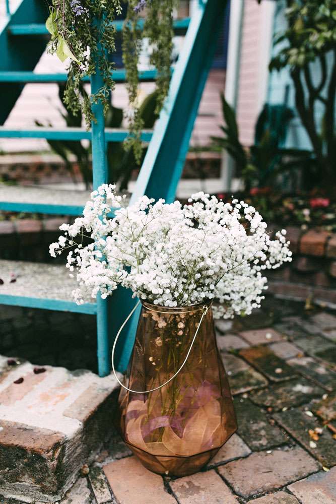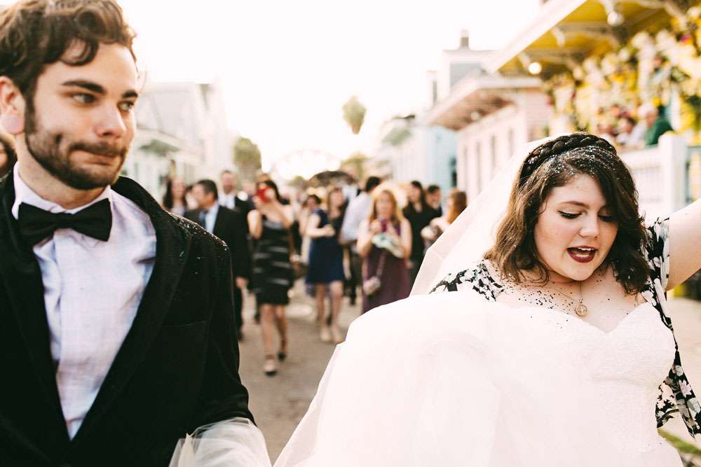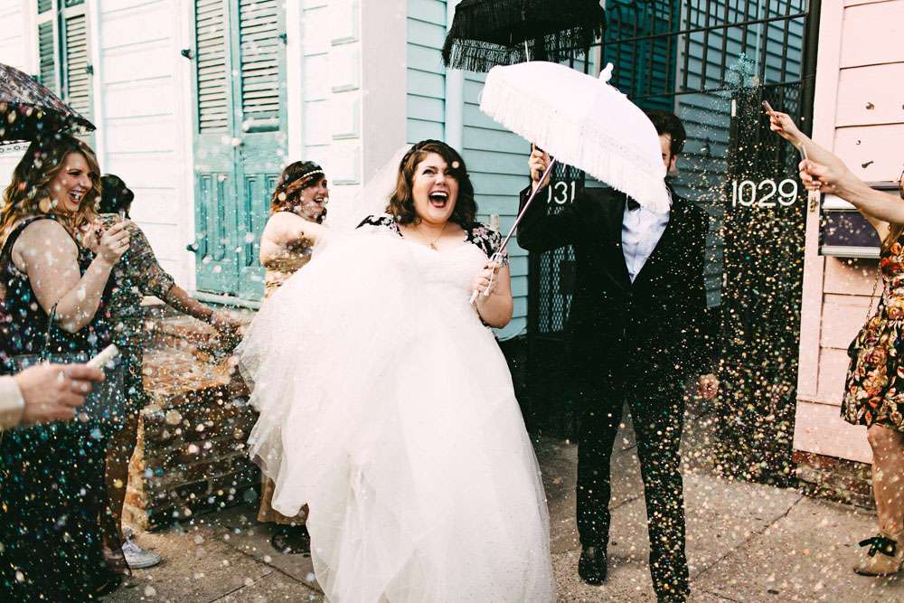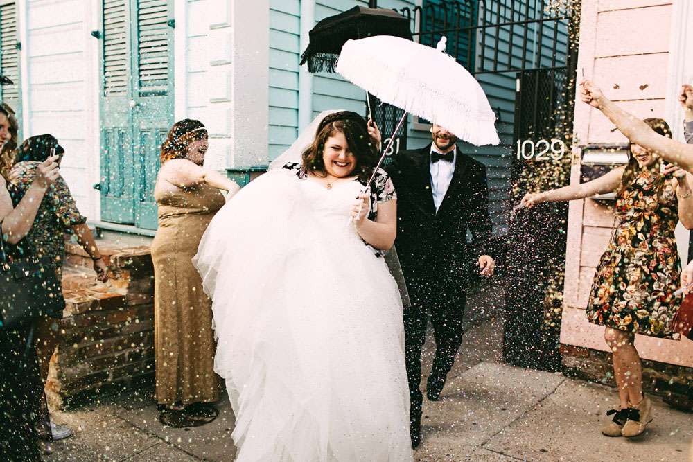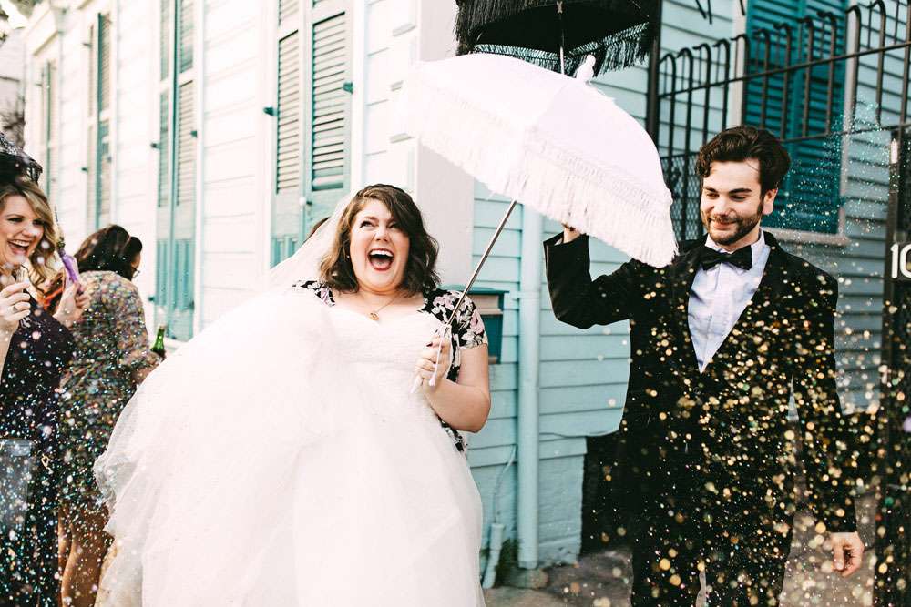 “Initially, I wanted my wedding to feel like you just stepped into a garden party from the Edwardian era”, Allison told me. “When we decided last minute to cancel all of our plans and have the wedding in New Orleans, we knew we would be able to get away with adding lots of confetti, crystals and champagne… because New Orleans is bright and fun and magical!”