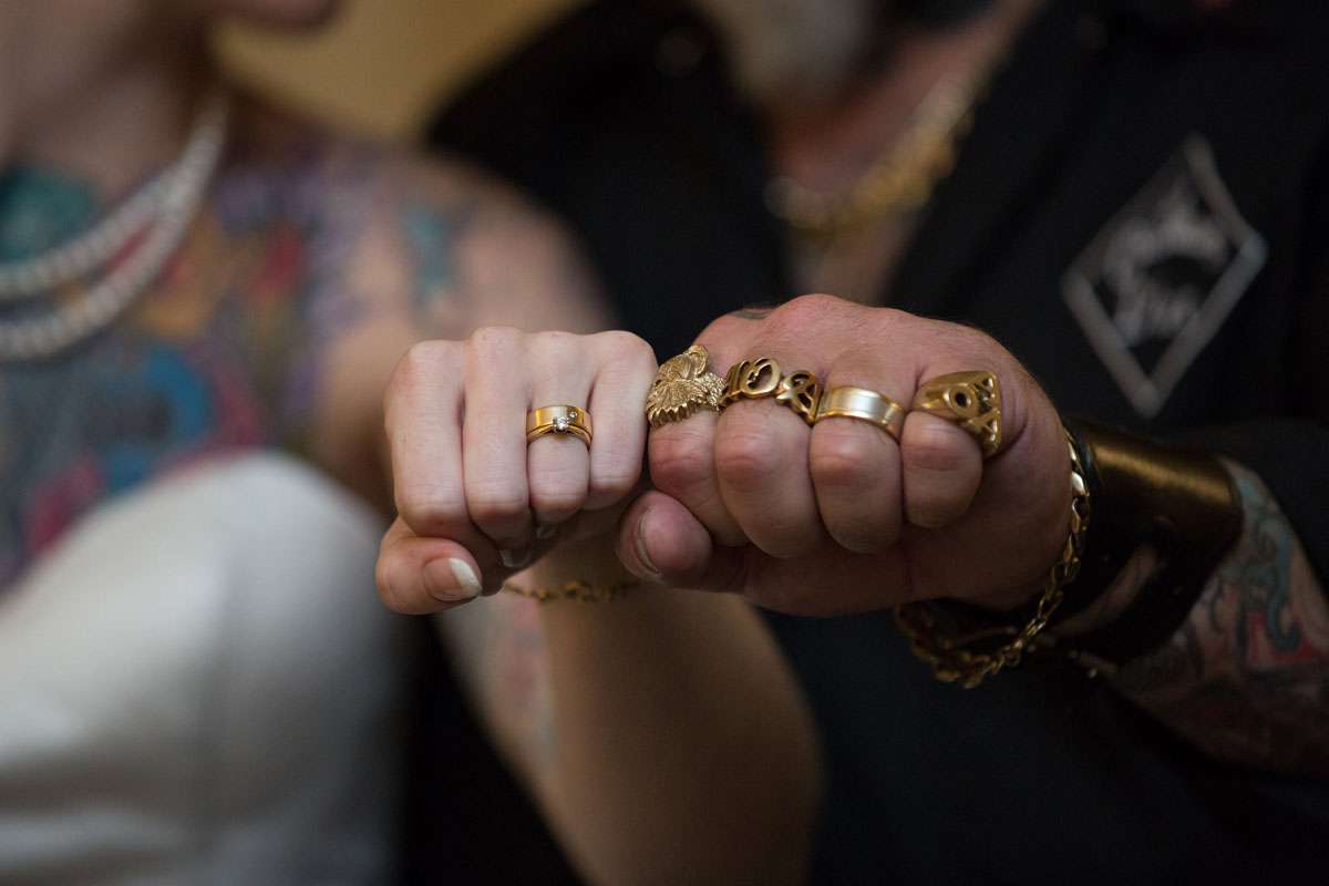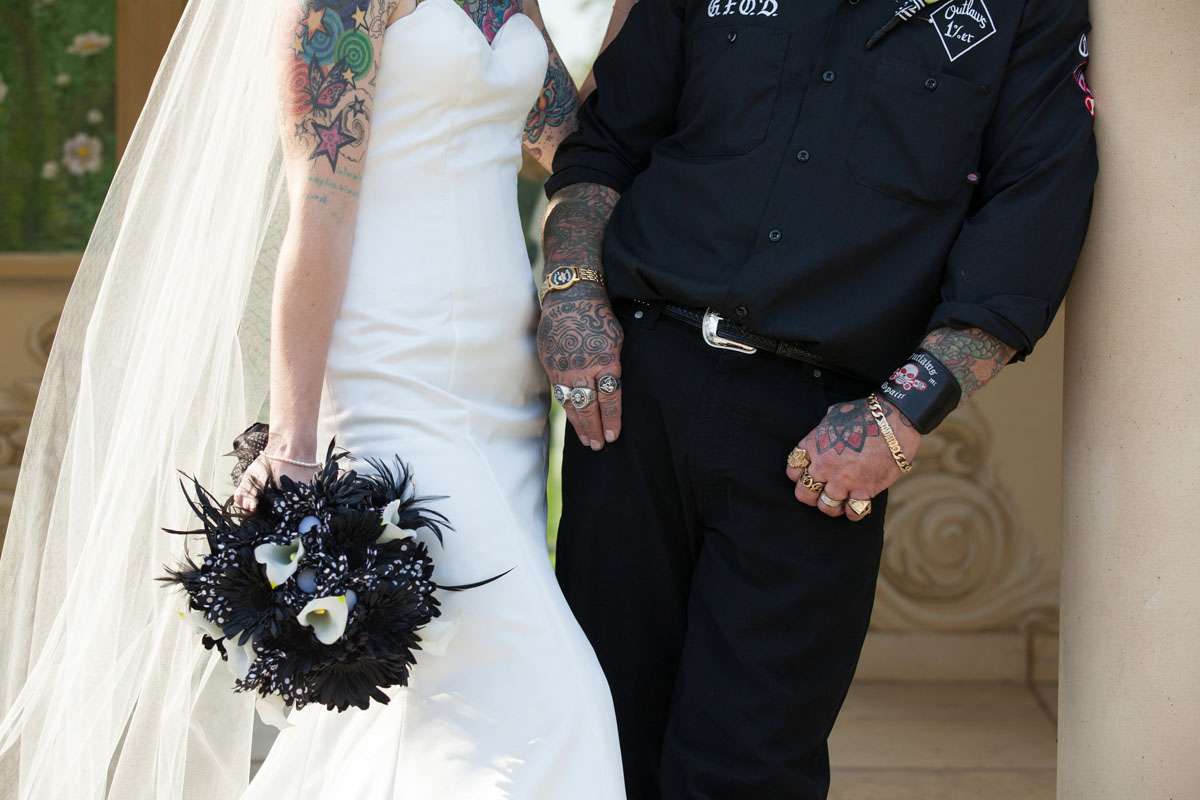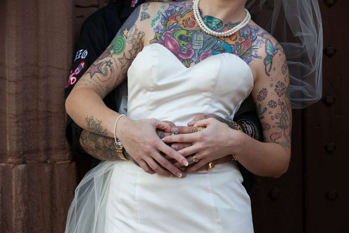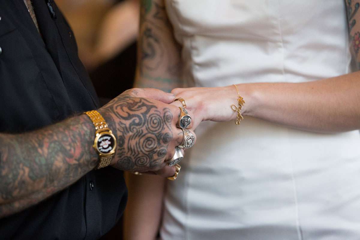 Kirsty met Oz when she went to work in his tattoo studio. “We’re both tattoo artists and after several months of working together it became apparent that we were meant to be together”, she told me. “Two years in, Oz popped the question. We spoke about our big day regularly, and we saved and saved like mad. After 12 months we decided to bite the bullet and book a date and venue. We continued to save and had some generous donations from loved ones to help us on our way.”