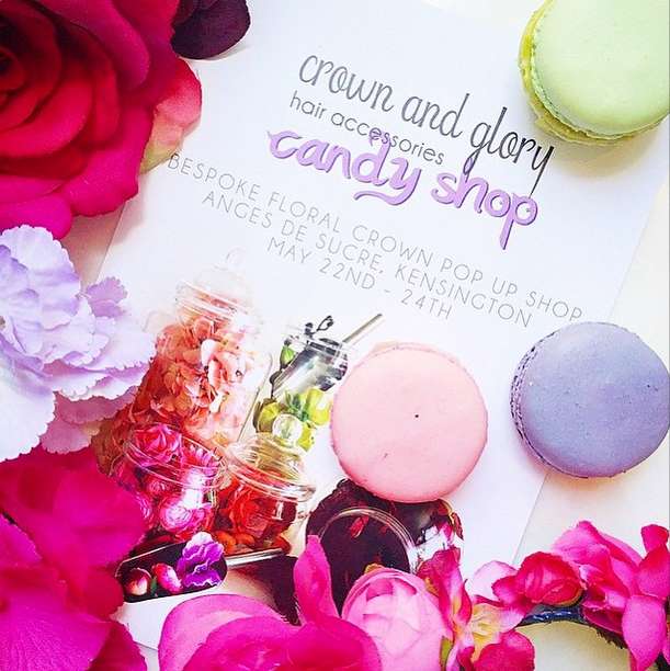 ♥ My babe Crown and Glory will be hosting her first ever pop-up show at Anges de Sucre in Kensington, London this weekend AND I CAN’T WAIT! I’ll be there on the Saturday and I’m so excited to design my own floral crown, headband or fascinator (or erm, maybe all three!) The Crown and Glory Candy Shop runs Friday 22nd May – Sunday 24th May.