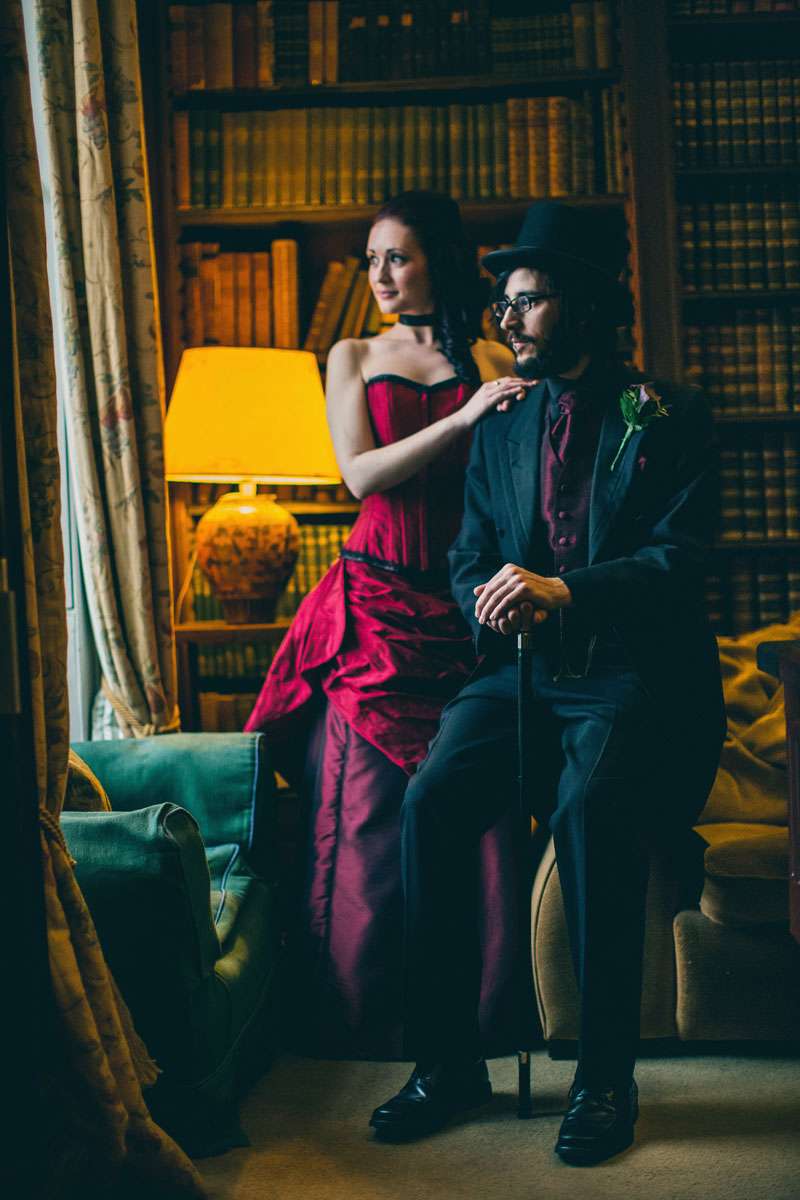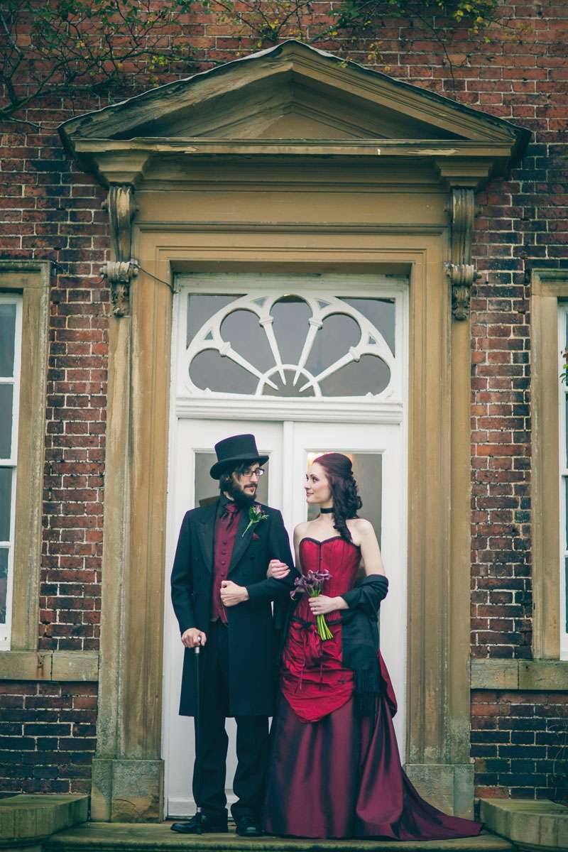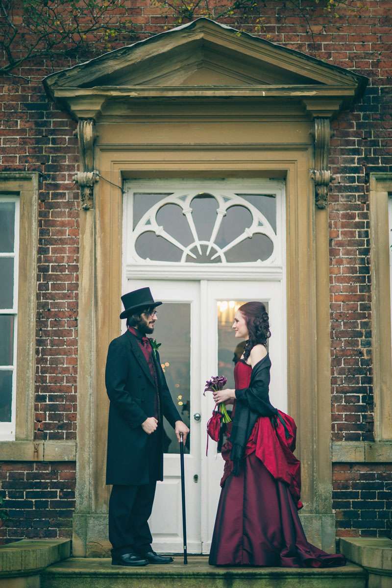 Michelle and Drew were married in November at Norwood Park, Nottinghamshire. “I have a great fondness (hmm… obsession) with history”, Michelle told me. “I studied it at university and frankly, I can’t get enough! Drew said he didn’t care what he wore for the wedding so long as he could wear a top hat and carry a cane! So my Victorian gothic revival fantasy wedding was born.”