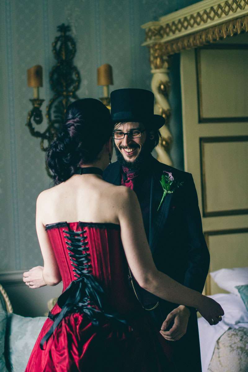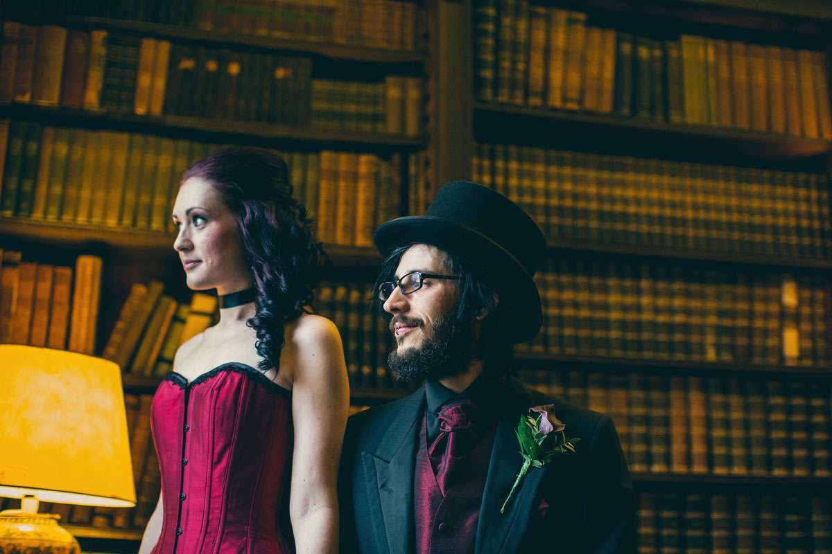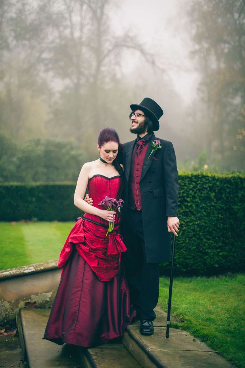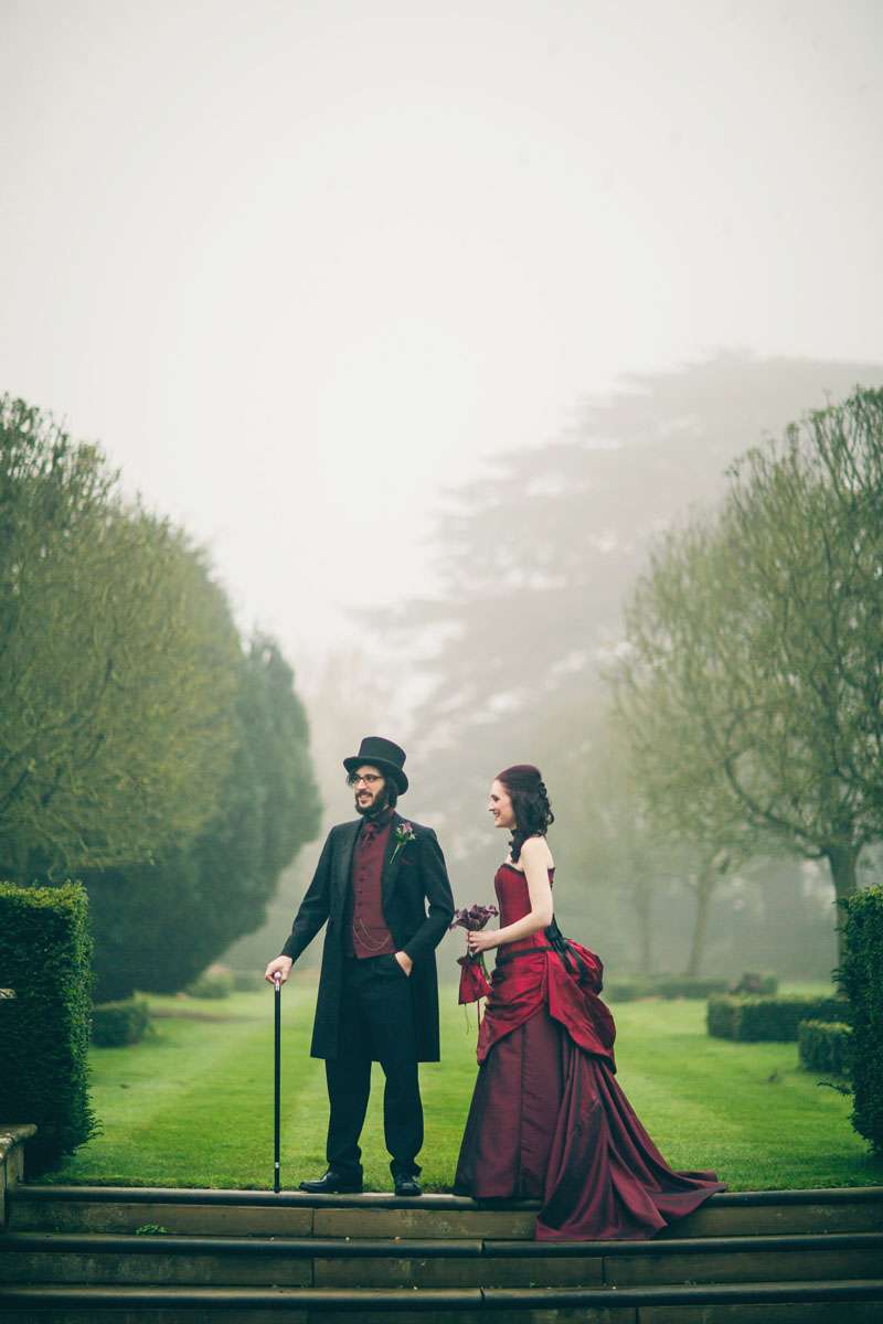 Michelle and Drew were married in November at Norwood Park, Nottinghamshire. “I have a great fondness (hmm… obsession) with history”, Michelle told me. “I studied it at university and frankly, I can’t get enough! Drew said he didn’t care what he wore for the wedding so long as he could wear a top hat and carry a cane! So my Victorian gothic revival fantasy wedding was born.”
