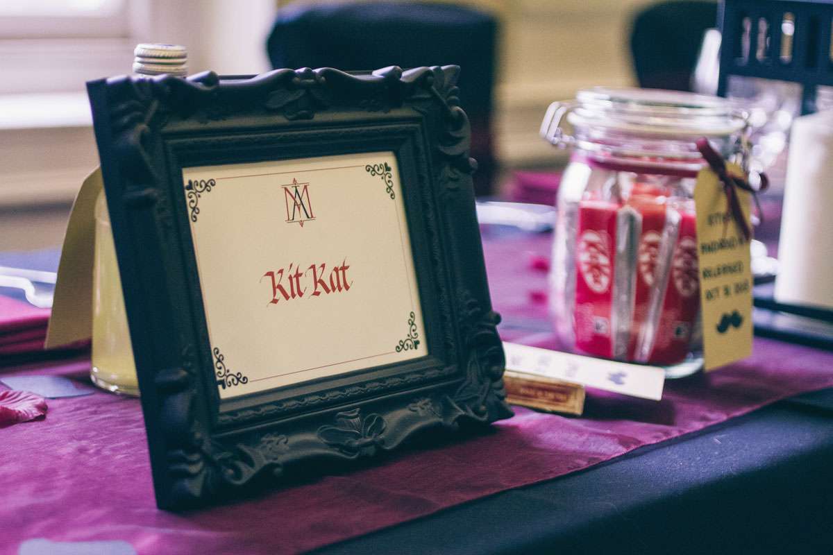 “One of my favourite details was our Victorian themed photo booth. We consider ourselves very lucky to have found Andy and his booth. I searched the internet for Victorian booths thinking that it was a long shot and there probably wouldn’t be any. How wrong I was! As if it was meant to be, I found one only a few miles from where we live and it was fabulous! It had been kitted out with red velvet curtains and had brass buttons and old fashioned signage. The camera was made to look old and the guest book was in the Victorian style. It was completely perfect for us and our theme!”