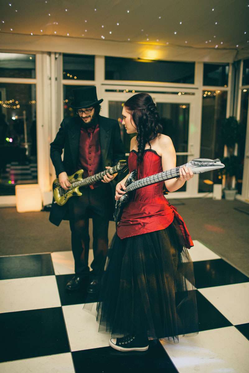 “We decided we wanted the evening reception to be the best party we had ever been to. We enjoy punk/ska/metal/pop punk music, so in the absence of a band which fit our requirements, we made the playlist ourselves. It contained as many songs we love as we could fit in. This was difficult and took us about 6 months in all to get right, but we knew it had to be done if we were going to get music we actually liked. No One Direction here, thank you very much! We even had the string quartet play Nothing Else Matters by Metallica to sign the register to, which sounded beautiful on strings and also surprised a number of guests as they hadn’t realised how wonderful rock tunes can sound using classical instruments.”