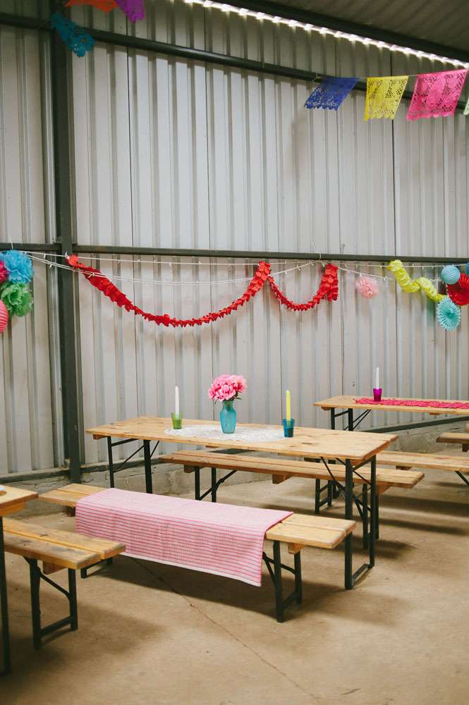 “There was no other way than going with the Cinco de Mayo vibe. In November 2014 we both ran a race in Chile, and as soon as we got there and had dinner in a small café with plastic table cloths, mismatched cutlery and plastic flowers, I knew this was how I wanted our wedding one day!”