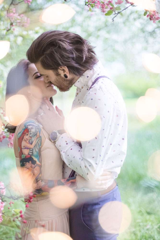 “The shoot was based on the idea of stories opening a whole new world and that being in love is a fairy tale”, said photographer Andreea of VeVi Photography. “Since Kirsty absolutely loves fairy tales and their wedding is going to be Disney themed, we wanted to create a dreamy fantasy environment for their engagement shoot too, just like they were in their own fairy story!”