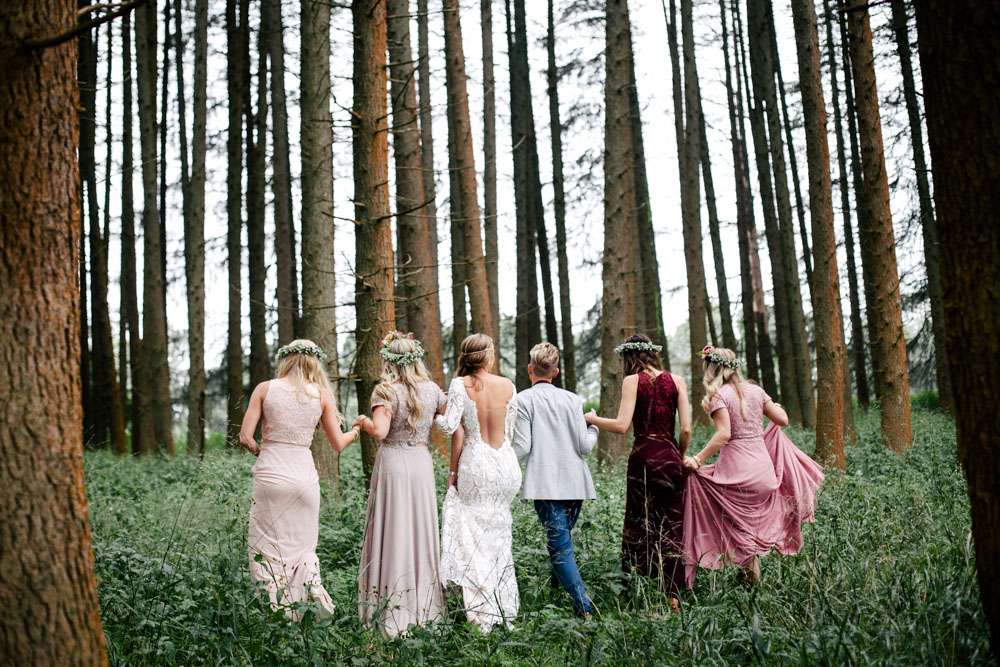 As if you’re not already feeling envious enough, Camilla actually designed her own wedding dress as well as the dresses her bridesmaids wore (is there no end to her talents?!) and had them made by a local dressmaker. They also planned and executed the entire wedding themselves, without the help of a wedding planner. “Champagne and nude have always been my colours, so I knew I wanted a different kind of dress”, she continued. “The fabric can from Bridal & Fabric World and was exactly what I had envisioned. I was also so keen to get my bridesmaids in leather jackets. I had a vision and it worked out so well! I think also having my brother-in-law with all of us girls put the cherry on top; he was our ultimate accessory.”