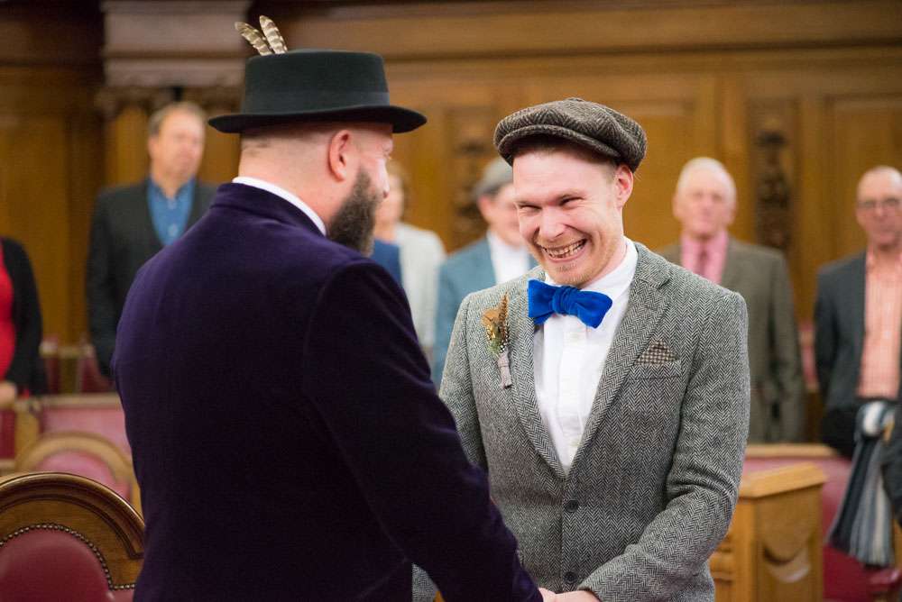 “We met in a pub in Camden in 2008”, they told me. “Russ is a Londoner and Chris, a Hullensian. Russ said, ‘You can tell you’re not a Londoner, because you’re smiling.’ The next night we met up in St John’s Tavern in Archway. It is a fantastic pub that really looks after its customers. As the place of our first sober encounter, we have a deep personal connection with it, and it had to have a key role in our wedding.”