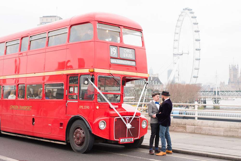 With gay marriage becoming legal across the whole of The United States and London Pride taking place this past weekend, this has to be the perfect time to share Chris and Russ’ fun-filled London wedding! They were married in February at Islington Town Hall, followed by a meal at St John’s Tavern and an evening reception at The Star.