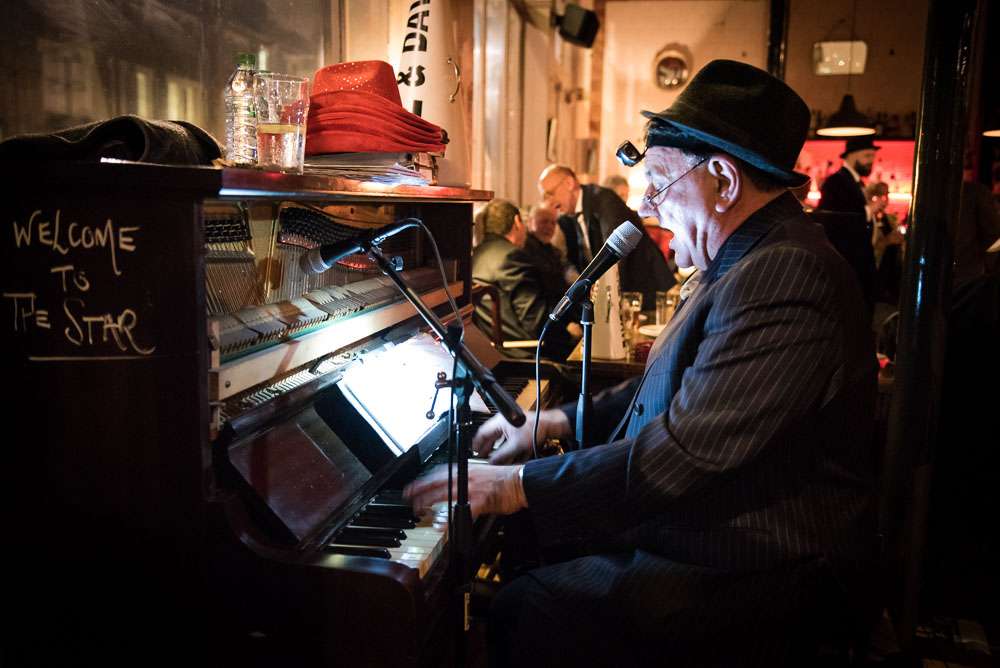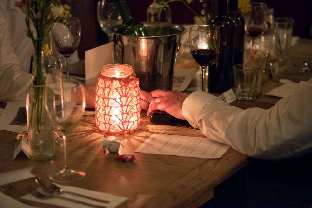 “After dinner Russ gave his speech, and the party picked up the crocheted lanterns from the tables and walked the 300 yards to the next venue, The Star. Chris gave his speech and we cut our amazing Hull City AFC and Tottenham Hotspur FC themed fruit and stout cake. The ceilidh and knees up kicked off the evening’s rousings. The ceilidh was ingeniously de-gendered by the caller Pete Truin who lined us up as Northerners and Southerners. Baz and Dave got everyone on their feet singing and dancing to boogie-woogie classics.”