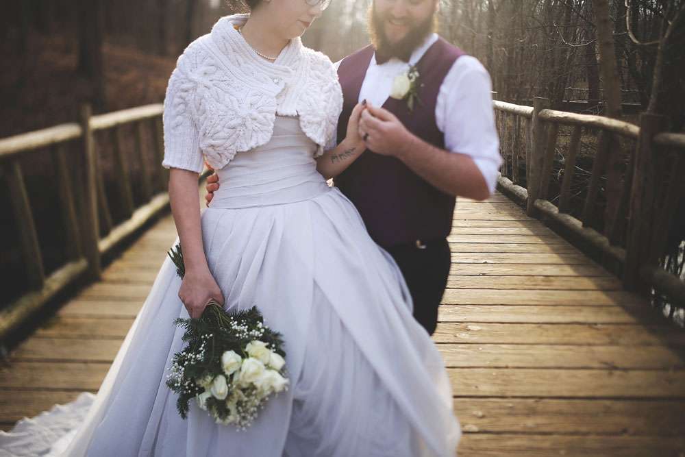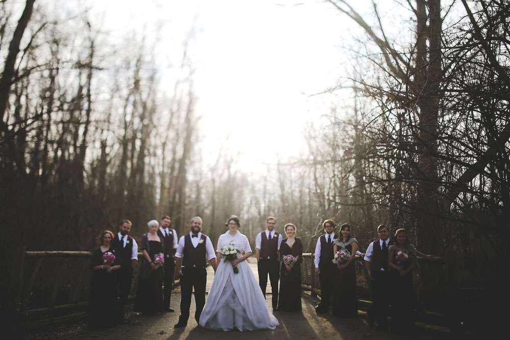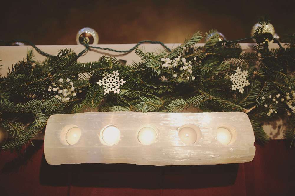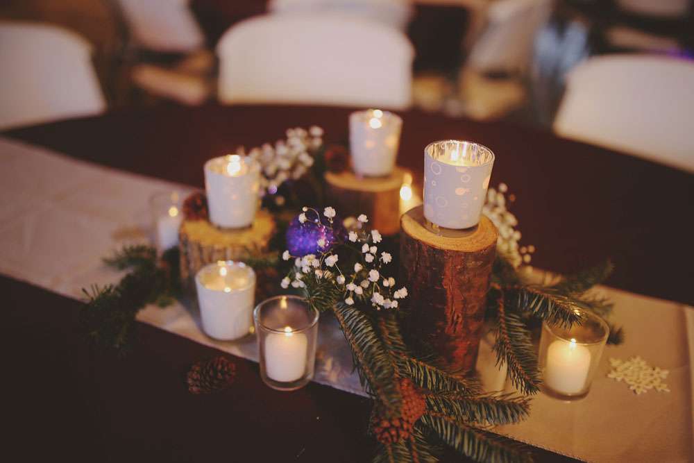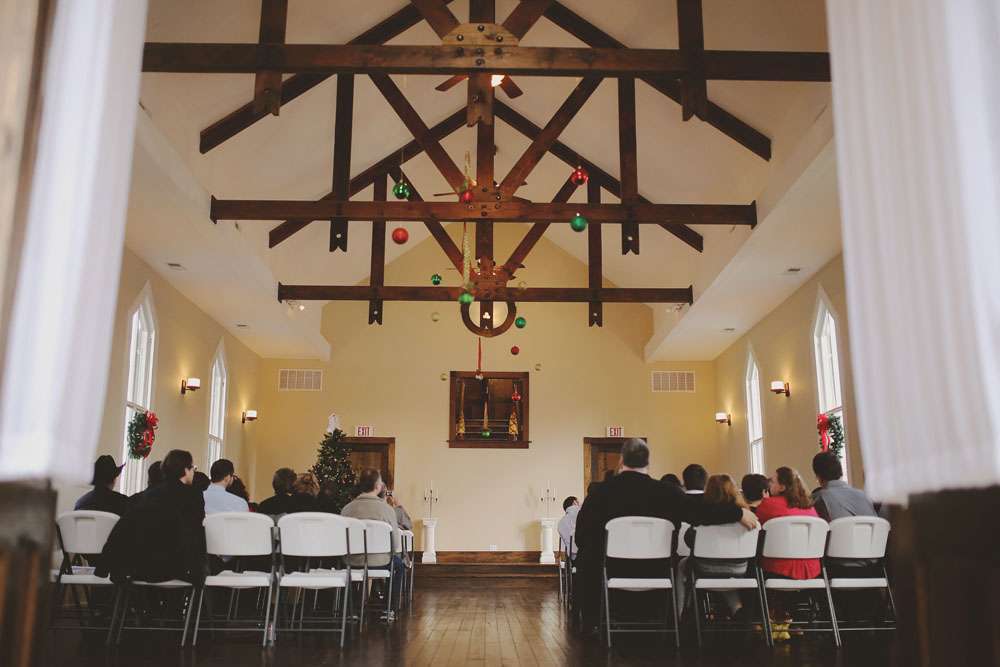 Anna and Travis were married in Louisville, KY on December 20th. The day had a winter and Christmas theme with lots of homemade touches. “We knew that we didn’t want something formal or scripted for our wedding”, said the bride. “Instead we wanted a big party! Neither of us are one for formal events, and we knew we wouldn’t feel genuine having the cookie cutter wedding. We wanted something laid back and enjoyable that didn’t break the bank and I think we succeeded.”