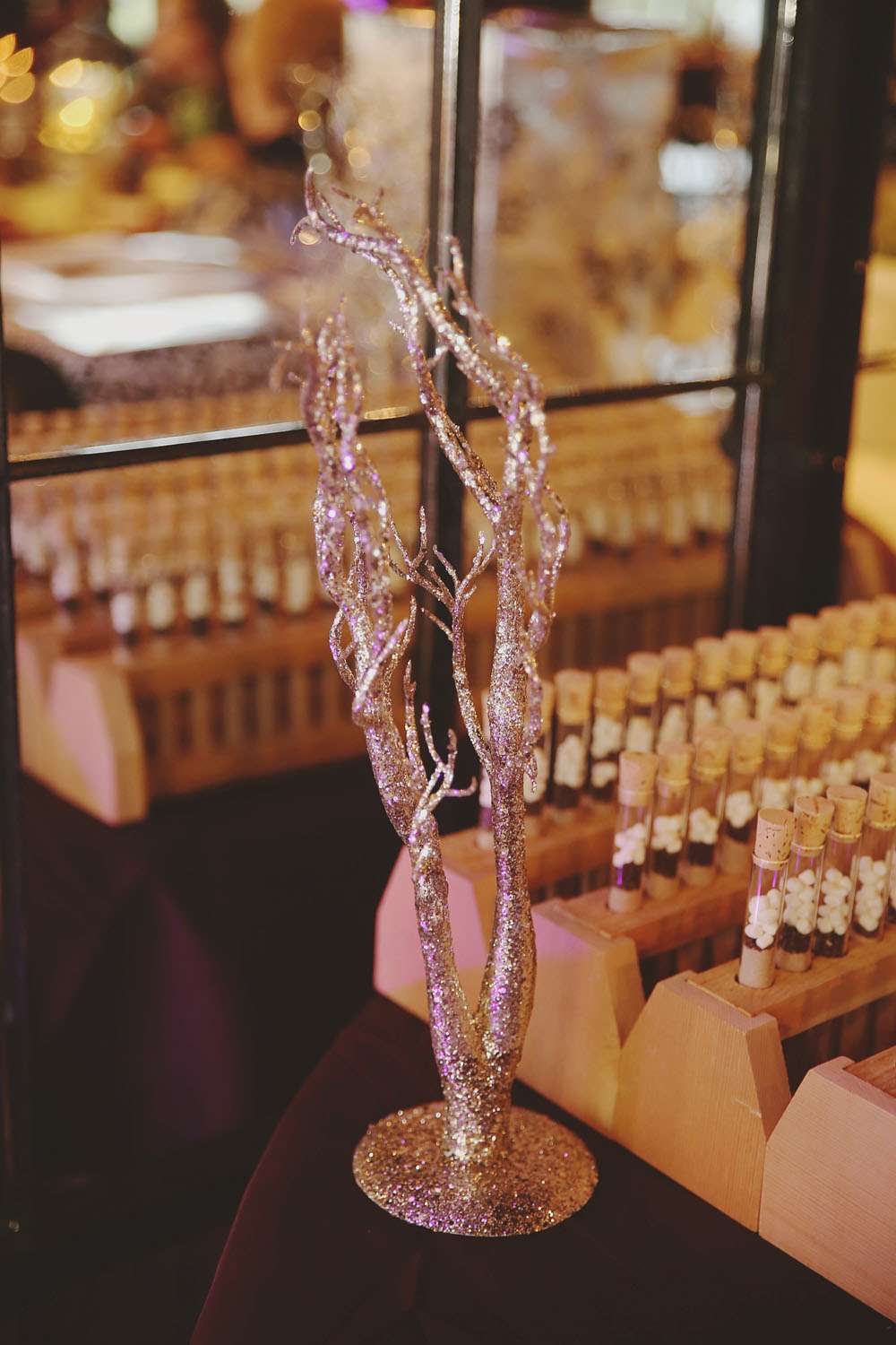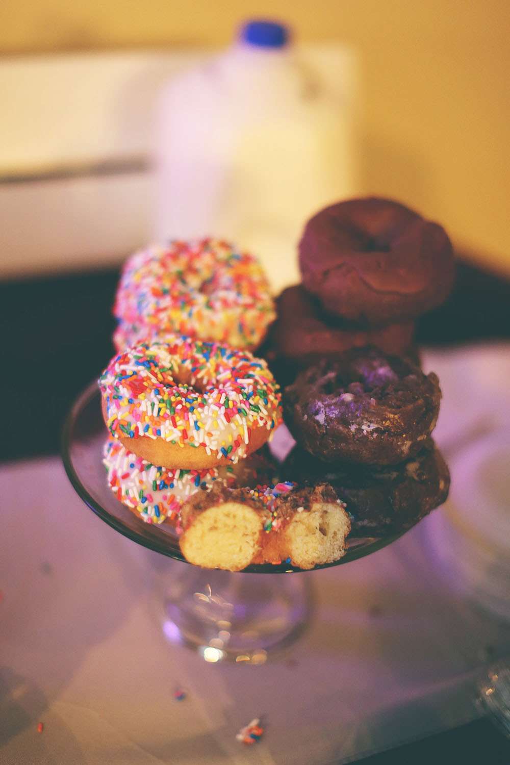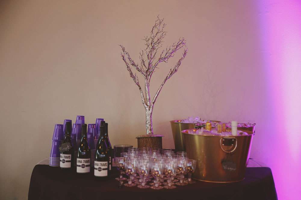 “All of the decorations were created and set up by friends and family, including our amazing centrepieces. The night before the wedding the entire bridal party had a sleepover where we put together hot chocolate favours for the guests. We also had 200 donuts instead of a wedding cake which not only worked out cheaper, they tasted better too!”