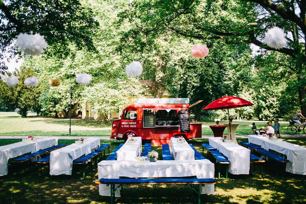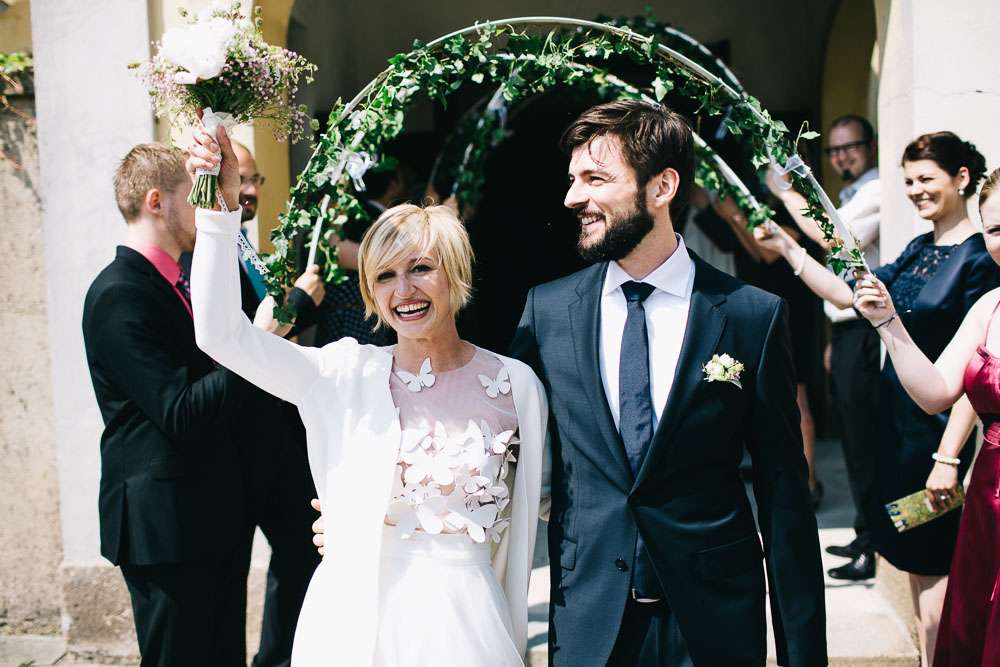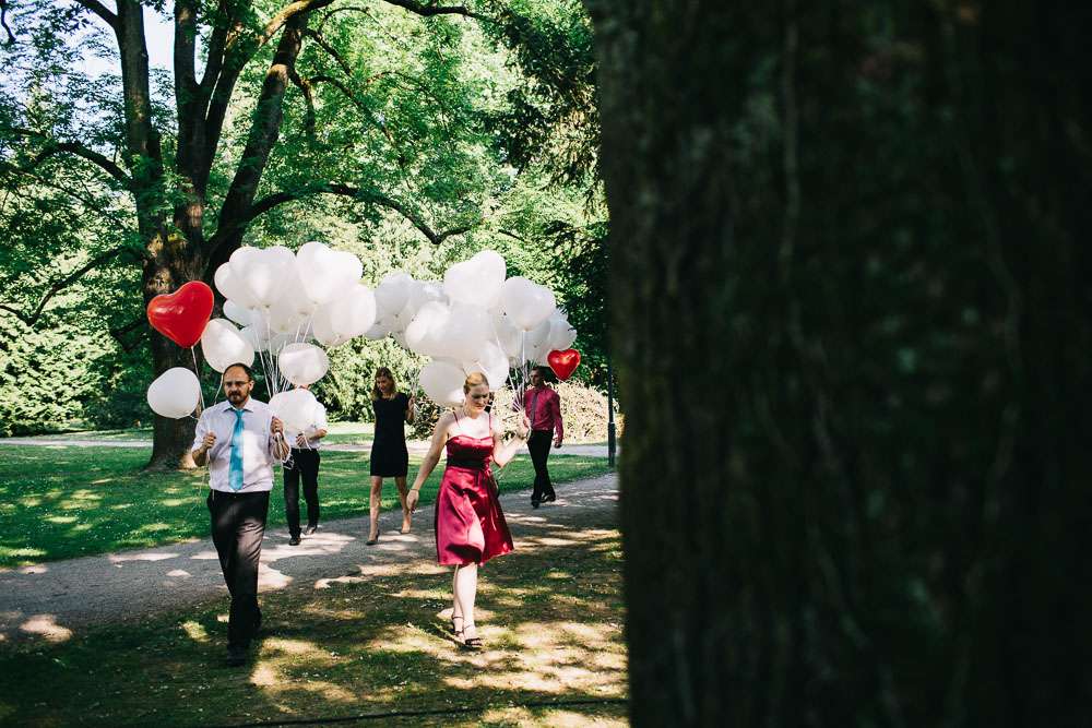 Iris and Josef planned their entire wedding by themselves. They wanted something casual and fun rather than formal and stuffy, so they chose to have their reception in a park in Regensburg, Germany.