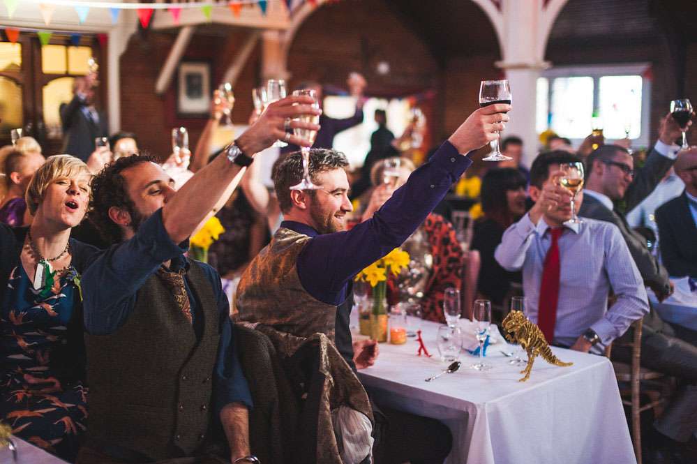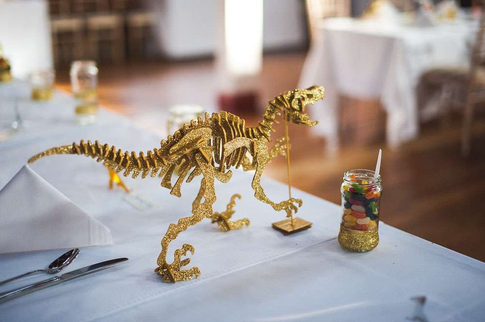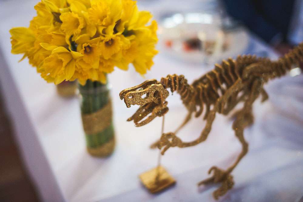 Sarah-Lily and Jon wanted a fun wedding that they’d created themselves. Their main theme was dinosaurs and glitter and all their family and friends pitched in to help.