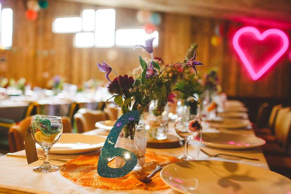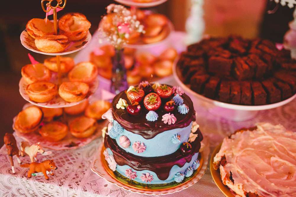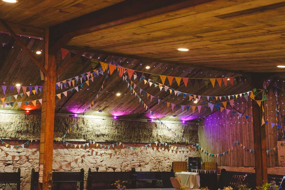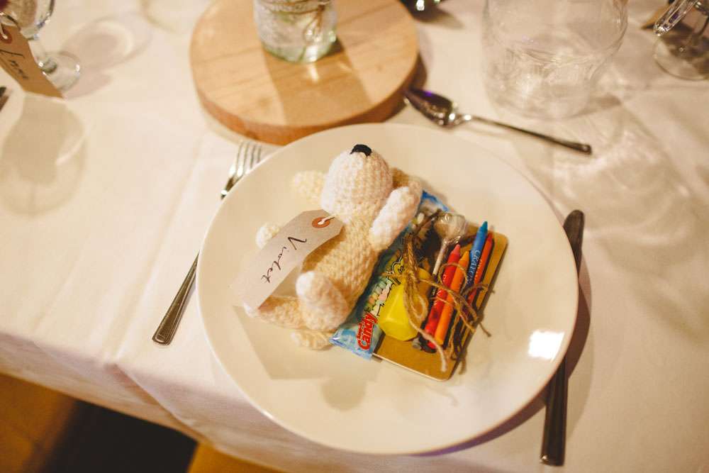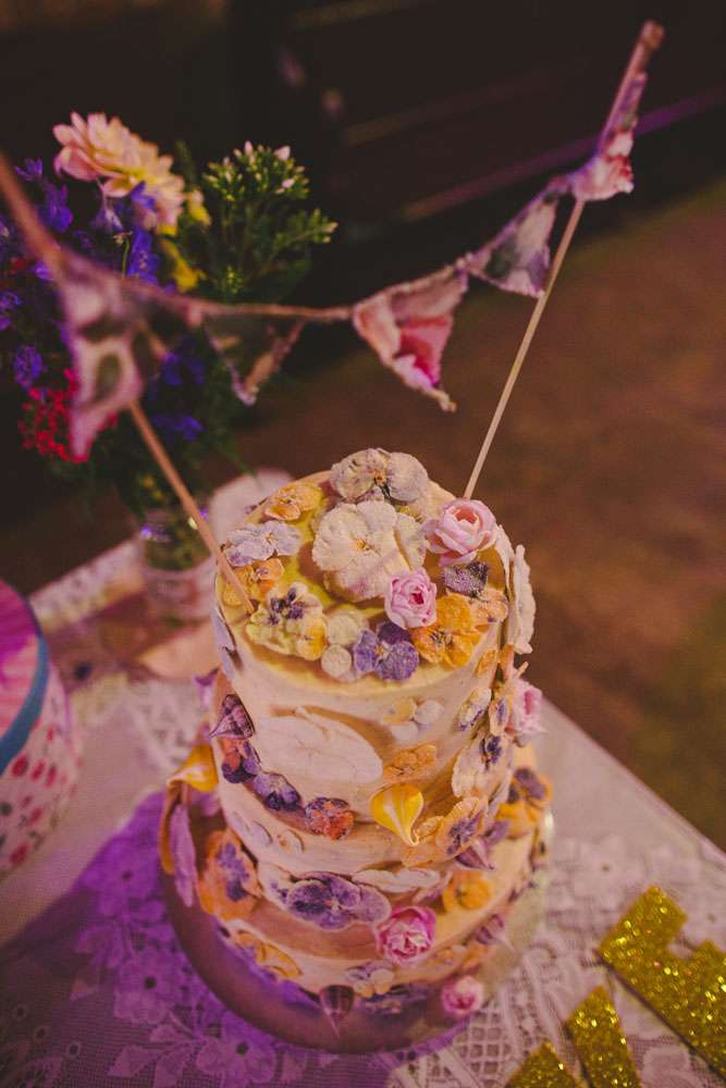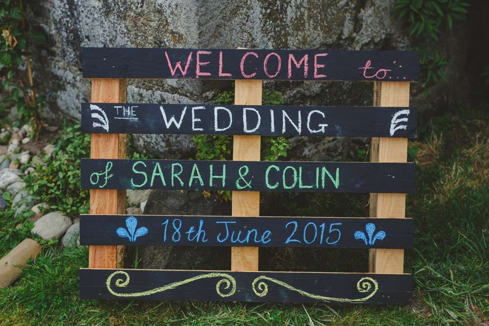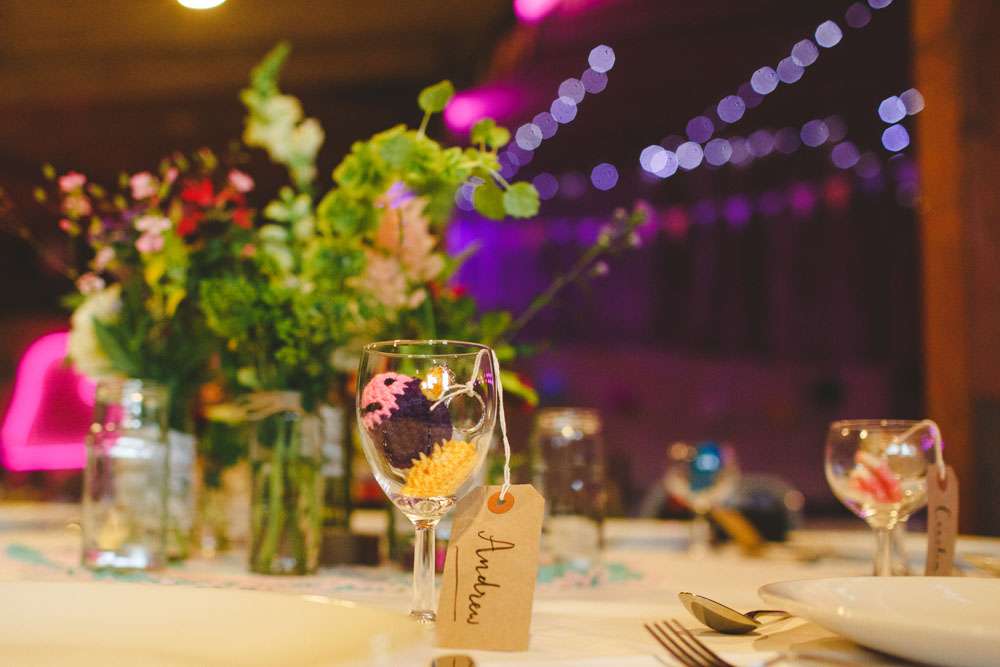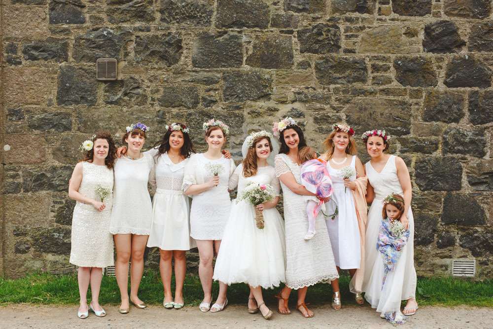 “We had loads of help from friends and family with making things including individual crochet favours for each guest made by my mum, the cake by one of my bridesmaids, the table numbers by another and all the wooden props by my dad and brother”, Sarah said. “All the other cakes and desserts were made by guests – we had a cake competition! I also made the ribbon curtain we had at the ceremony and me and my bridesmaids made our own flower crowns.”