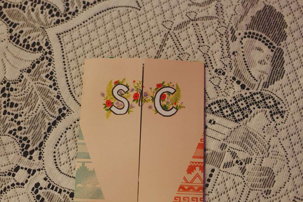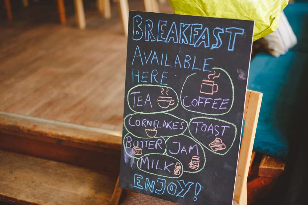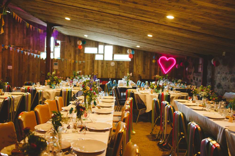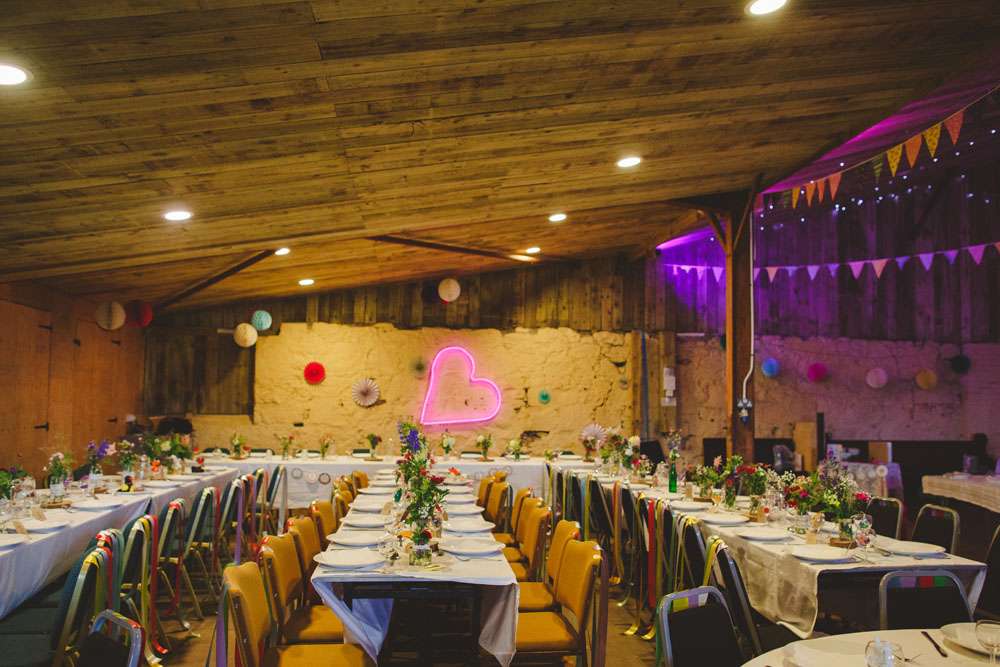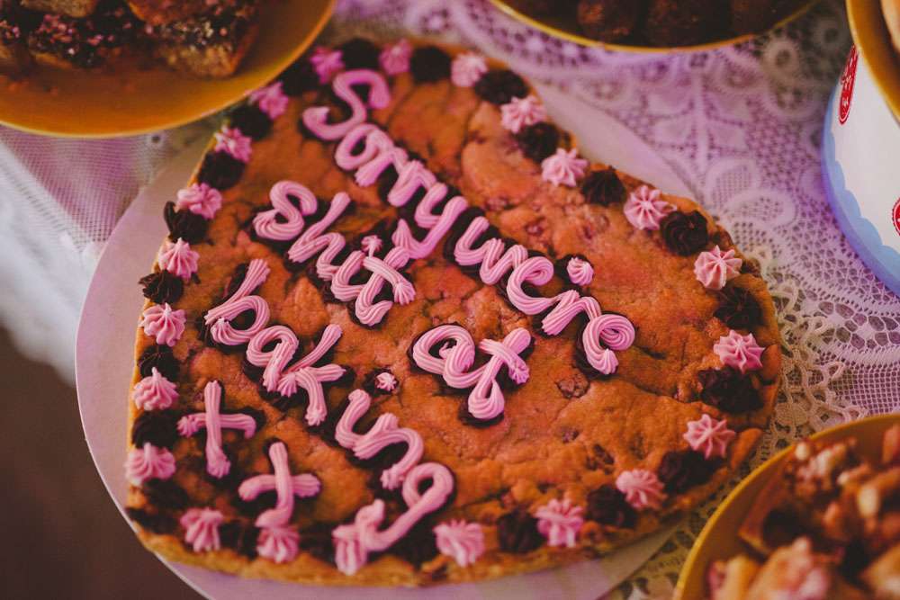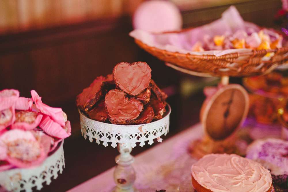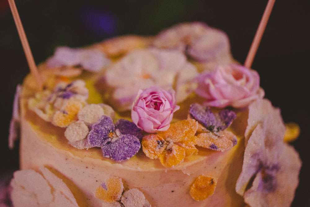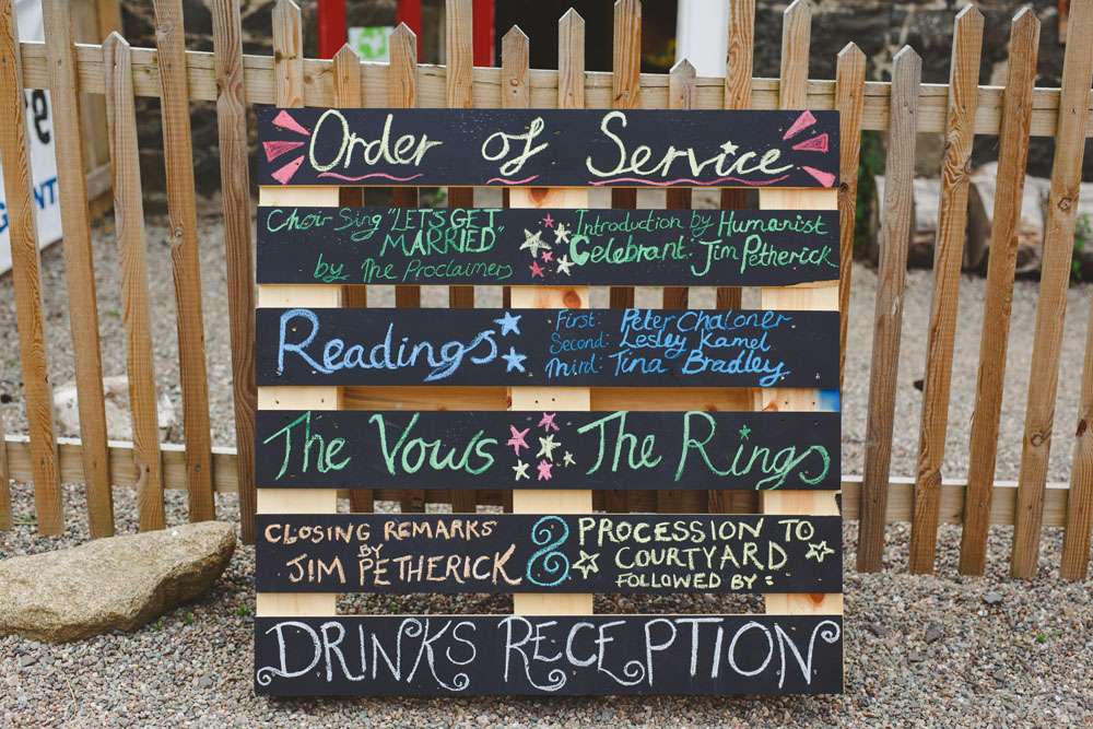“We had loads of help from friends and family with making things including individual crochet favours for each guest made by my mum, the cake by one of my bridesmaids, the table numbers by another and all the wooden props by my dad and brother”, Sarah said. “All the other cakes and desserts were made by guests – we had a cake competition! I also made the ribbon curtain we had at the ceremony and me and my bridesmaids made our own flower crowns.”