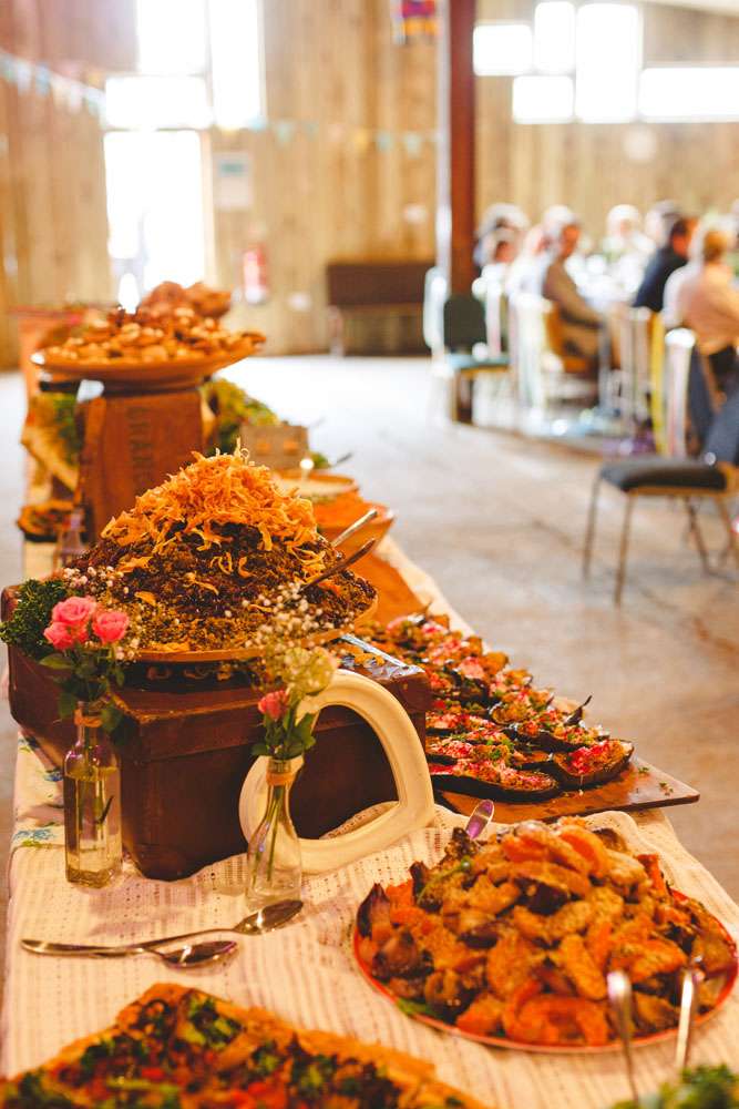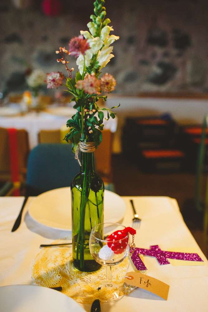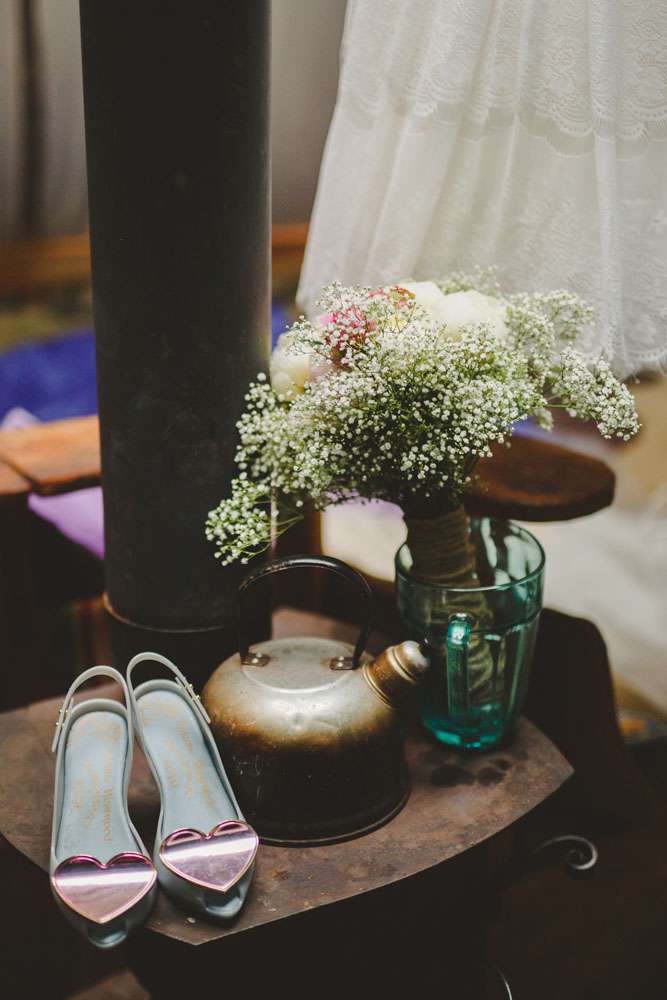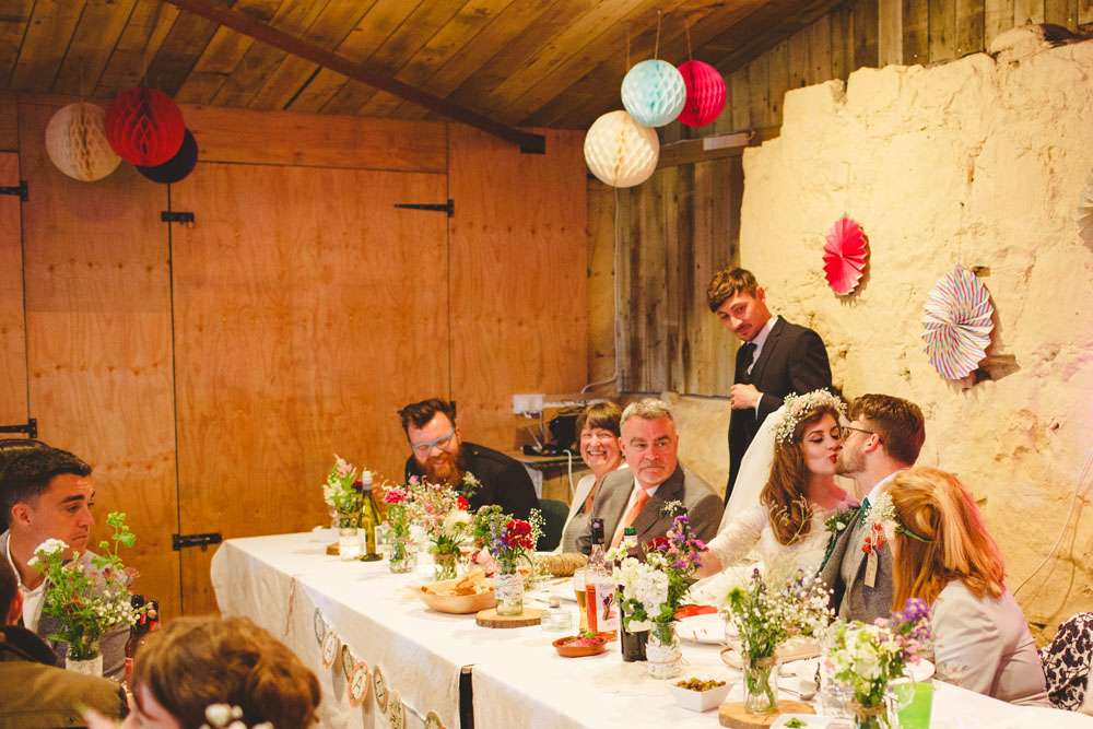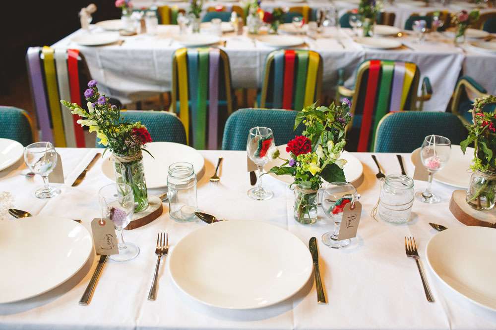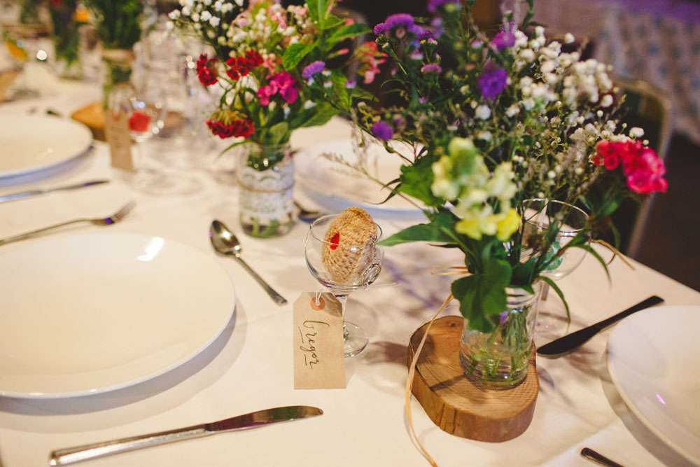 The bride wore a House of Mooshki dress with Vivienne Westwood for Melissa shoes for the ceremony and gold sparkly numbers from Russell and Bromley for the evening. “After our photographer, Hannah (who was worth every penny!) our next biggest expense was my dress”, Sarah explained. “However I was very lucky that my brother bought it for me as a wedding gift. We were also really able to save money on the desserts by having our guests make them! Our band were also a bargain, they are just starting out so gave us a great deal.”