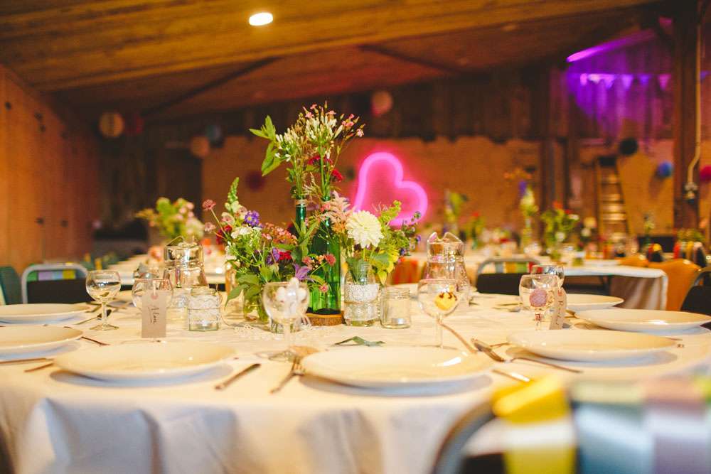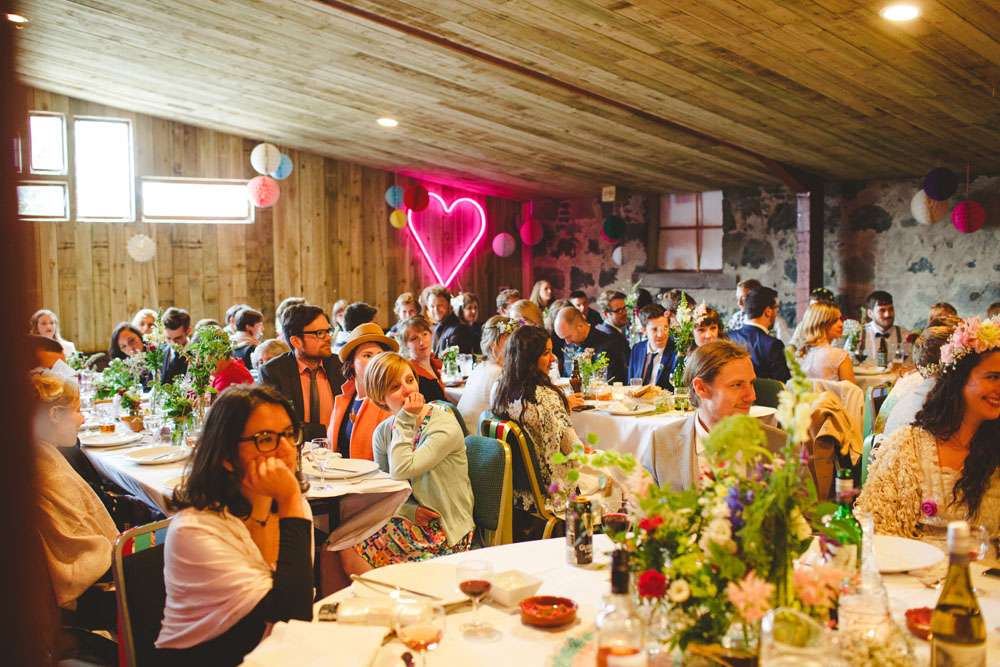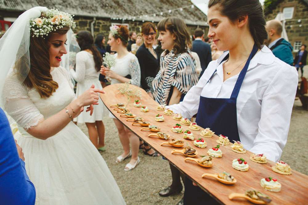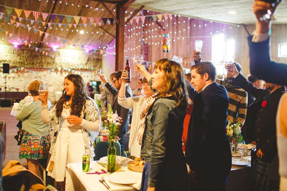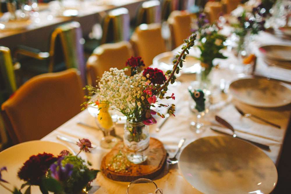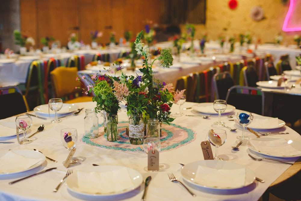 The bride wore a House of Mooshki dress with Vivienne Westwood for Melissa shoes for the ceremony and gold sparkly numbers from Russell and Bromley for the evening. “After our photographer, Hannah (who was worth every penny!) our next biggest expense was my dress”, Sarah explained. “However I was very lucky that my brother bought it for me as a wedding gift. We were also really able to save money on the desserts by having our guests make them! Our band were also a bargain, they are just starting out so gave us a great deal.”
