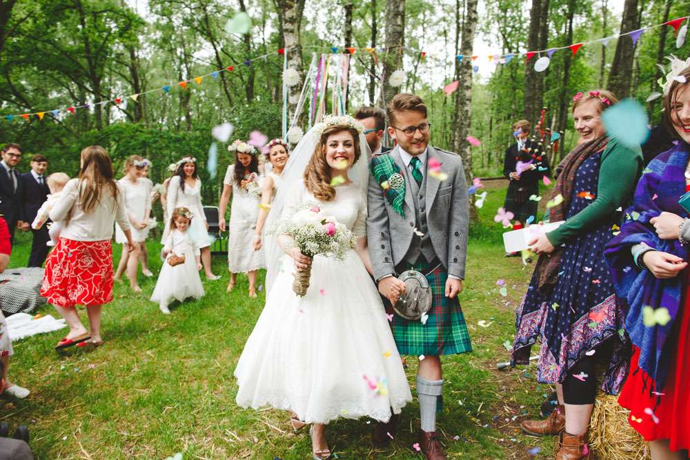 Sarah and Colin’s homemade wedding was full of personal touches and Scottish references. They were married at Comrie Croft in Perthshire, Scotland.