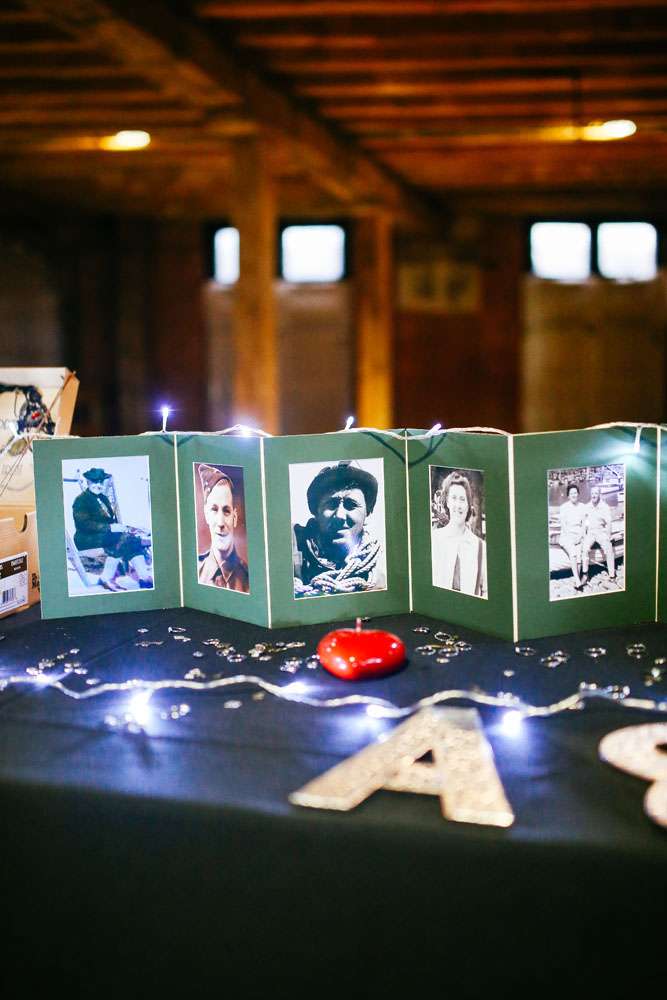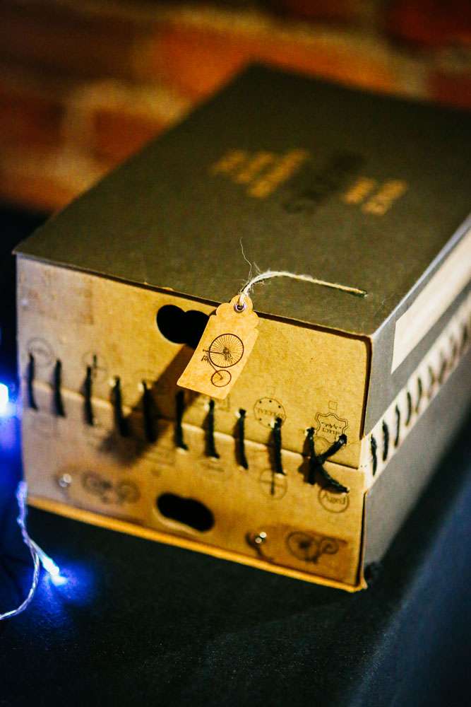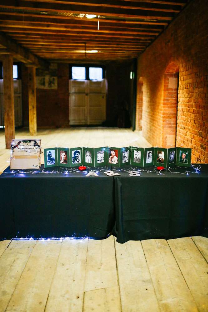 “We were also keen to make use of things we already had and to use things that could be reused again. We brought our cruiser bike and made a card box out of the shoe box that Stu’s wedding shoes came in. My Mum made a nice collage of all the relatives that are no longer with us to sit at the entrance as guests were coming in. This is a lovely piece and we have on display at home now.”