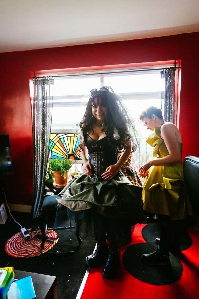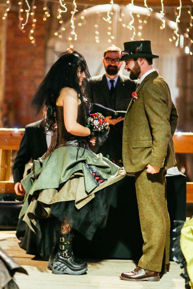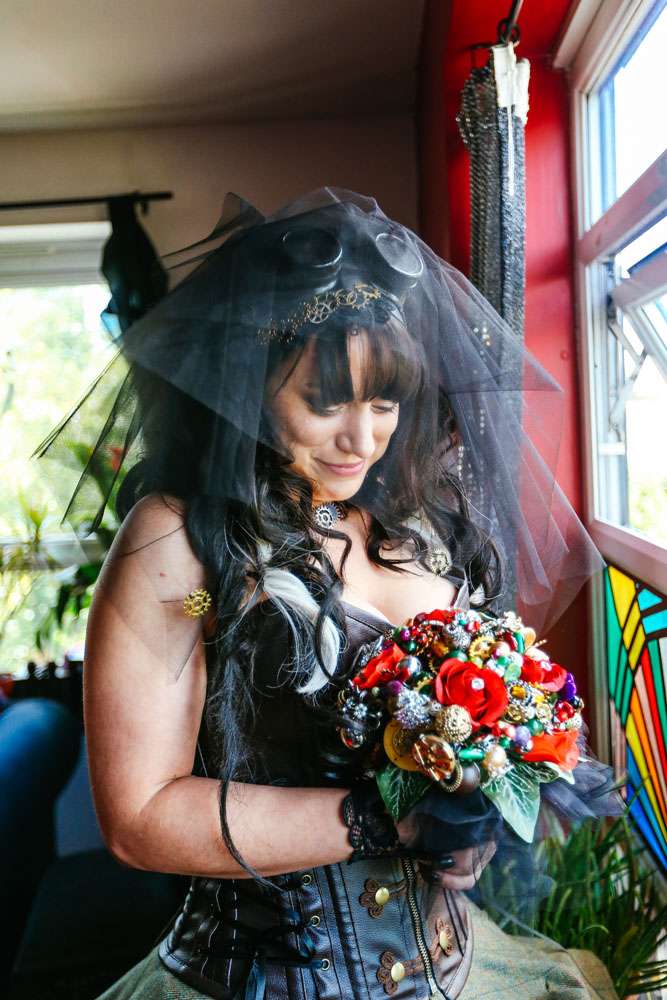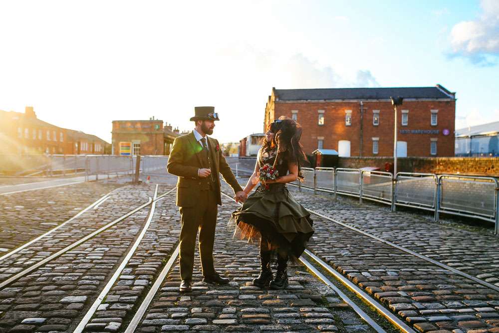“We both love the steampunk and neither of us was particularly keen on a traditional white wedding”, said Alys. “We are also not religious we fancied doing something a bit different. We both love the Museum of Science and Industry and have been going since we were kids so it was quite a poignant place to get married. I can’t quite remember which came first, the theme or the venue, but either way they complimented each other really well!”