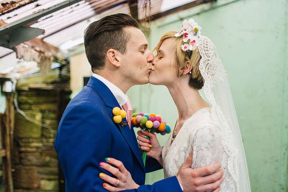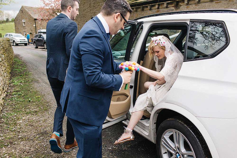 Zoe wore a vintage dress that she found on Etsy. Her shoes were from Coast and her barefoot sandals that she wore them with were also via a seller Etsy. “My dress wasn’t expensive”, she explained”, and we also saved a lot by making and collecting things for the tables ourselves. Our biggest costs were the venue and the food. We fell in love with Utopia at Broughton Hall when we saw it and as we’re both hugely into food it was important for it to be great! Our caterers did an AMAZING Texas BBQ feast.”