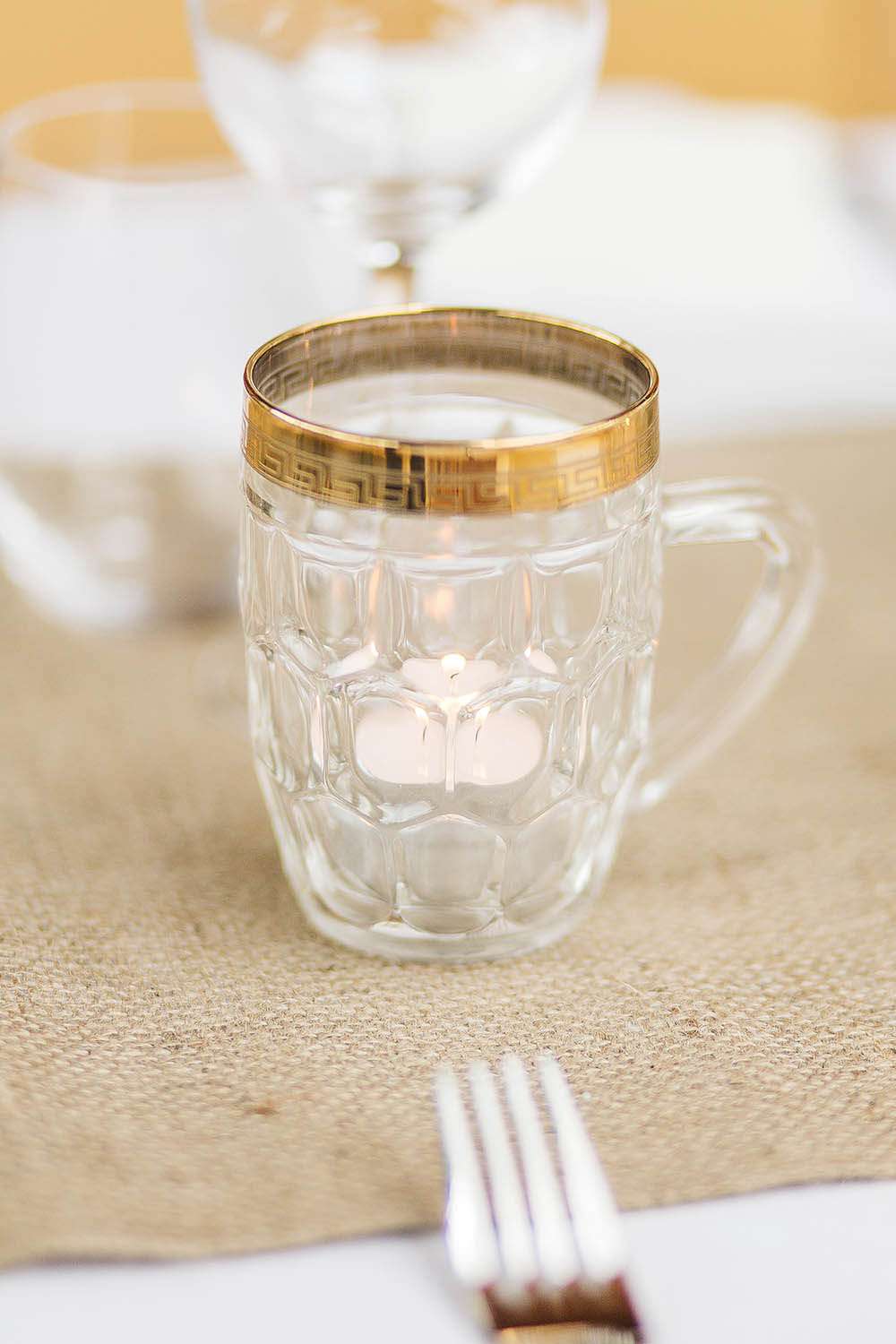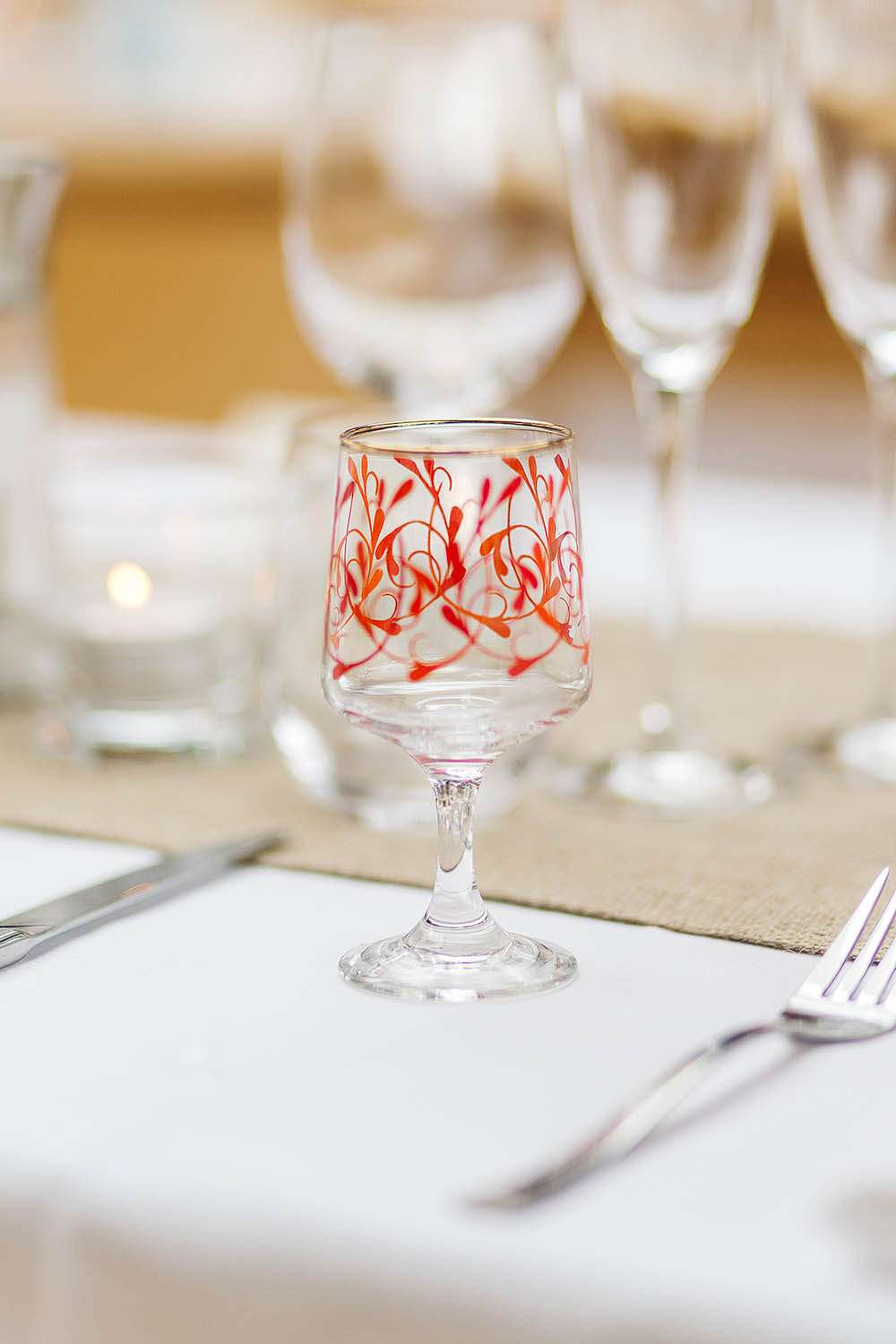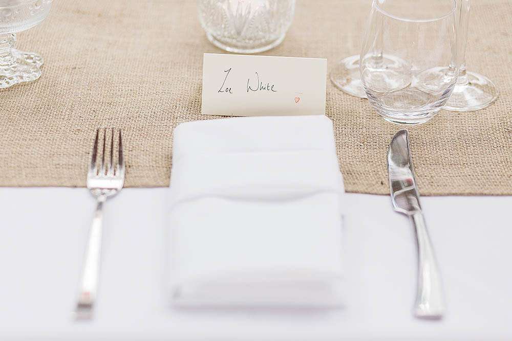 “We also purchased (and had friends and family finding) glassware of all shapes and sizes in charity shops for the tables. The escort cards (to help people find their seat) was in an envelope and pegged onto a piece of string in a photo frame that we just put together with drawing pins!”