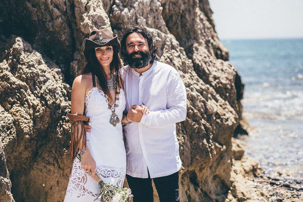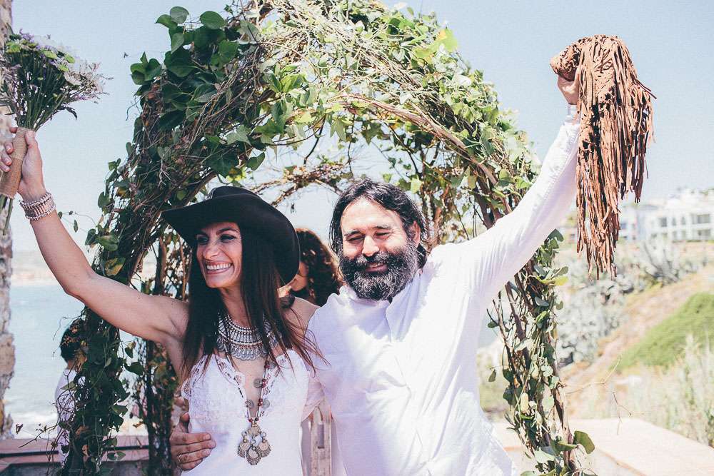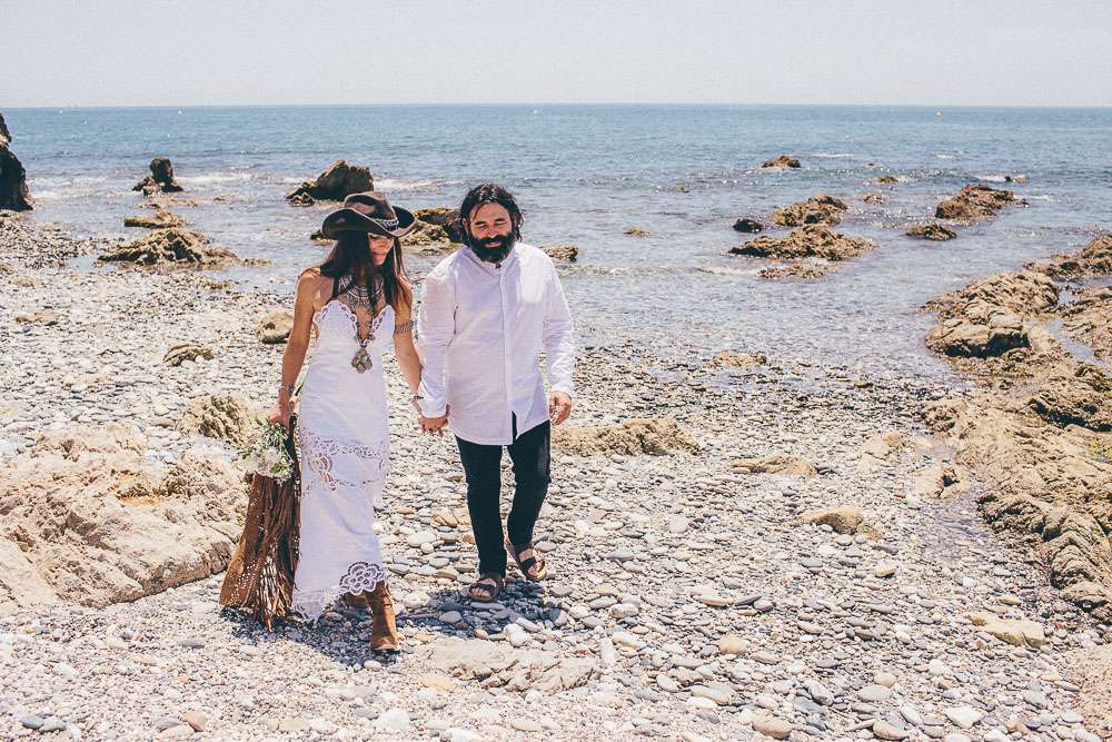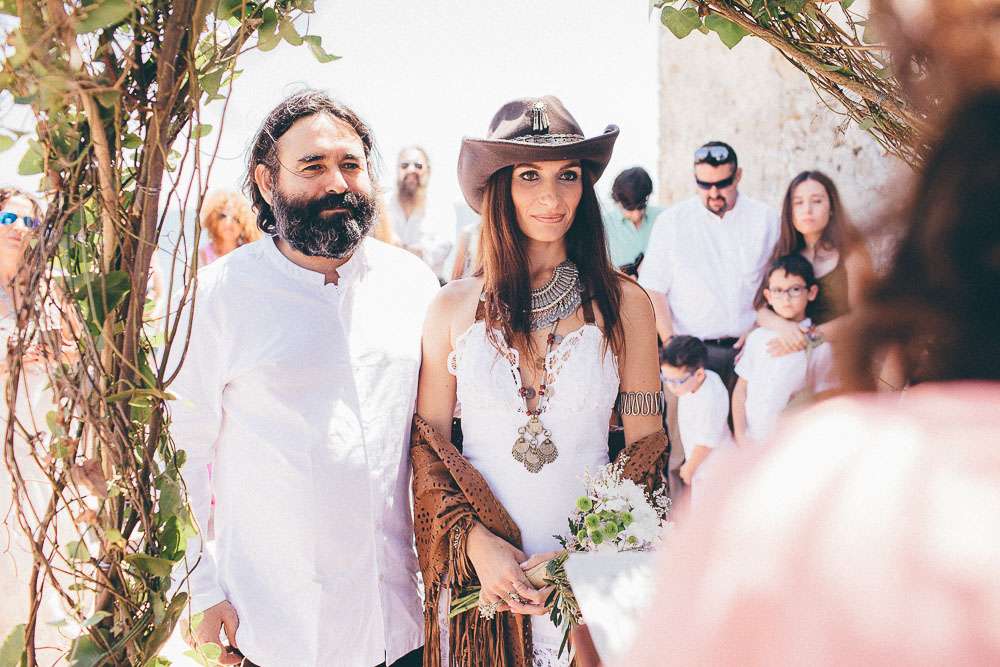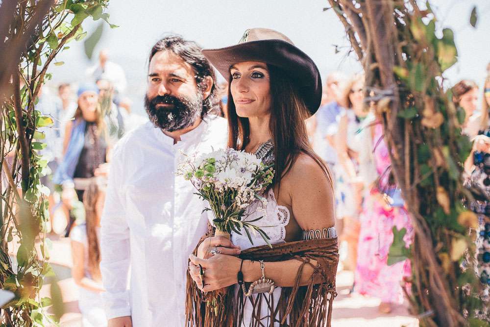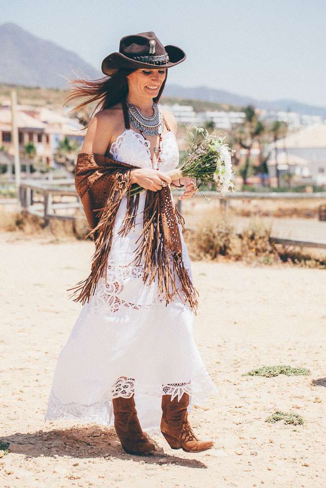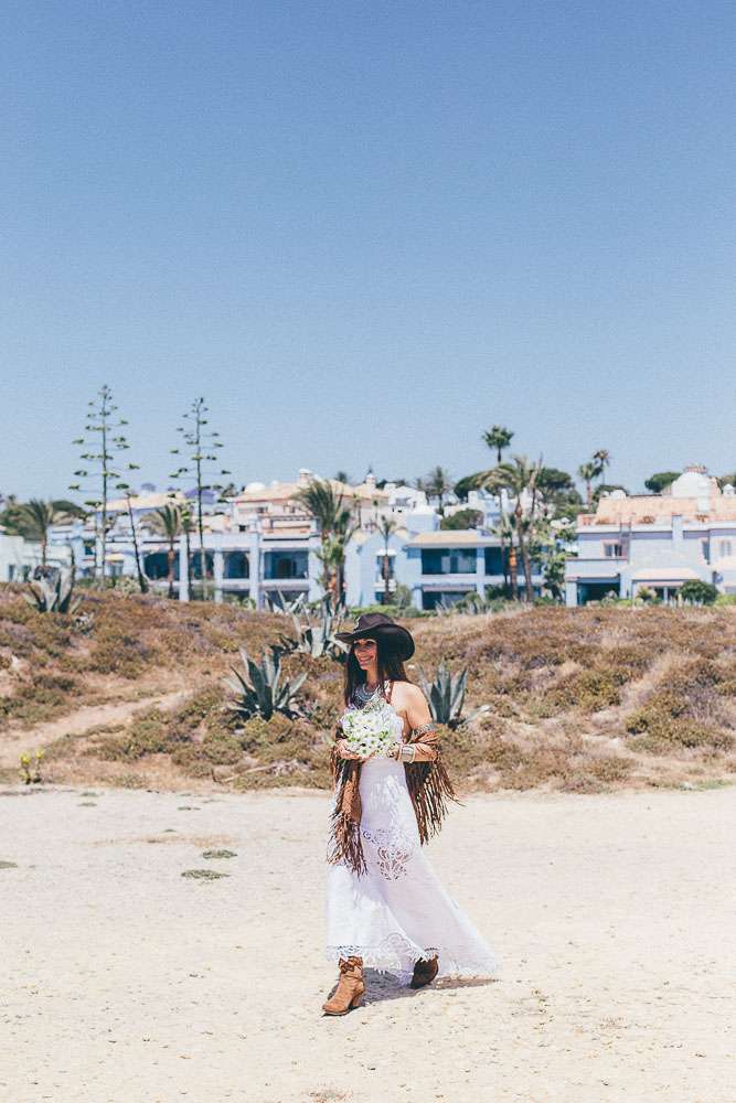 “We didn’t have any particular theme for our wedding, we just wanted to be us and our guests to be themselves!”, Ana said. “We love music from the 60s and 70s and the Woodstock music festival so I guess that inspired us a bit. We also love American country music which was the inspiration for my outfit. The wedding was held in the South of Spain, overlooking the ocean. The beach location worked really well with this variety of styles. It really came together very well.”
