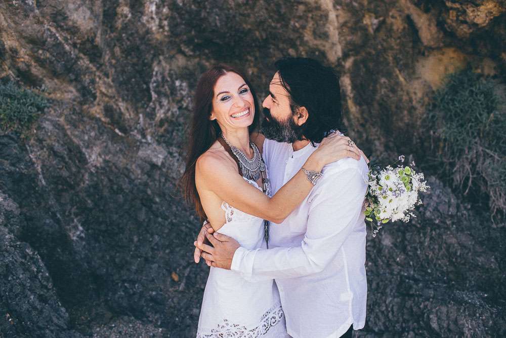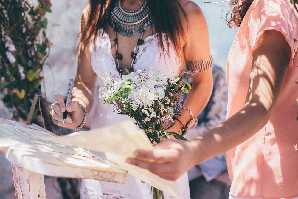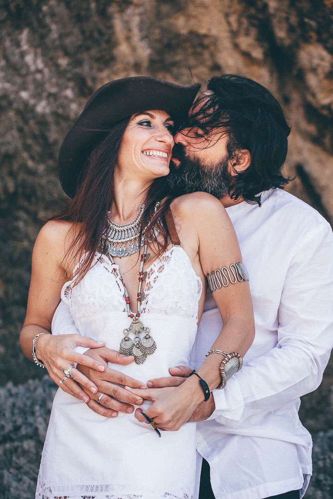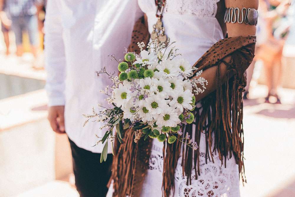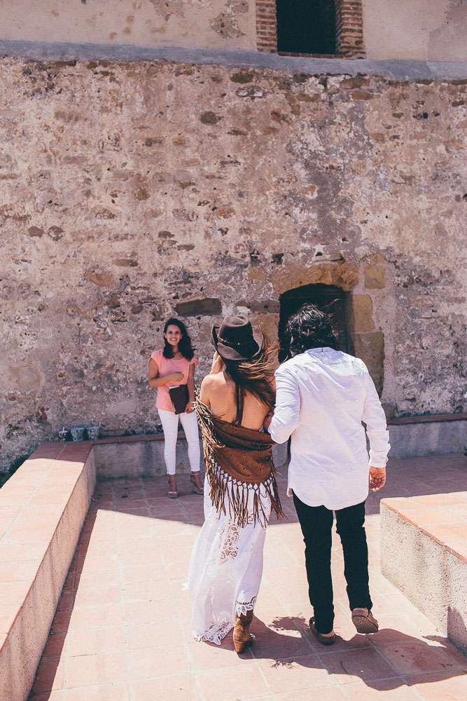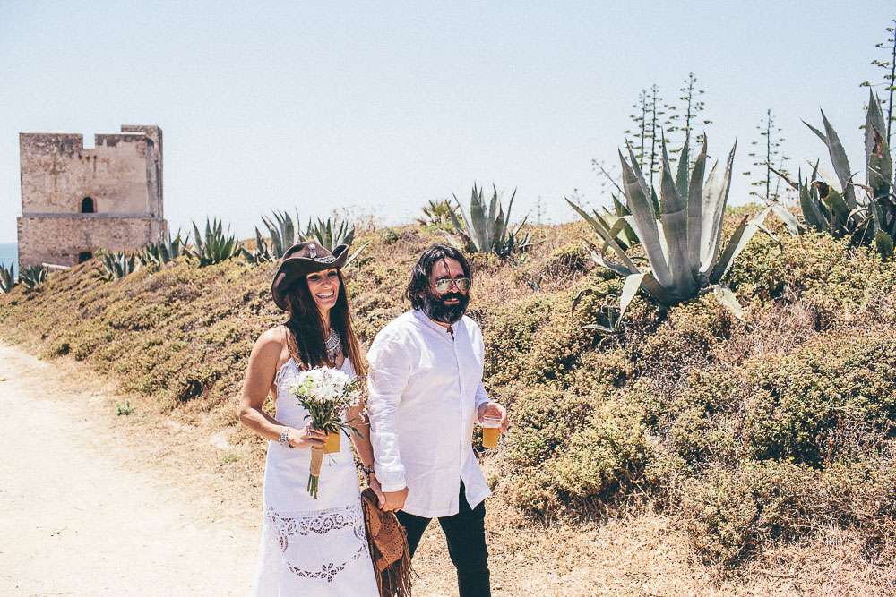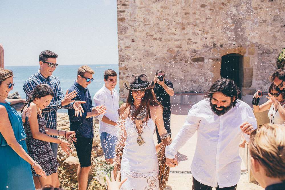 “We didn’t have any particular theme for our wedding, we just wanted to be us and our guests to be themselves!”, Ana said. “We love music from the 60s and 70s and the Woodstock music festival so I guess that inspired us a bit. We also love American country music which was the inspiration for my outfit. The wedding was held in the South of Spain, overlooking the ocean. The beach location worked really well with this variety of styles. It really came together very well.”