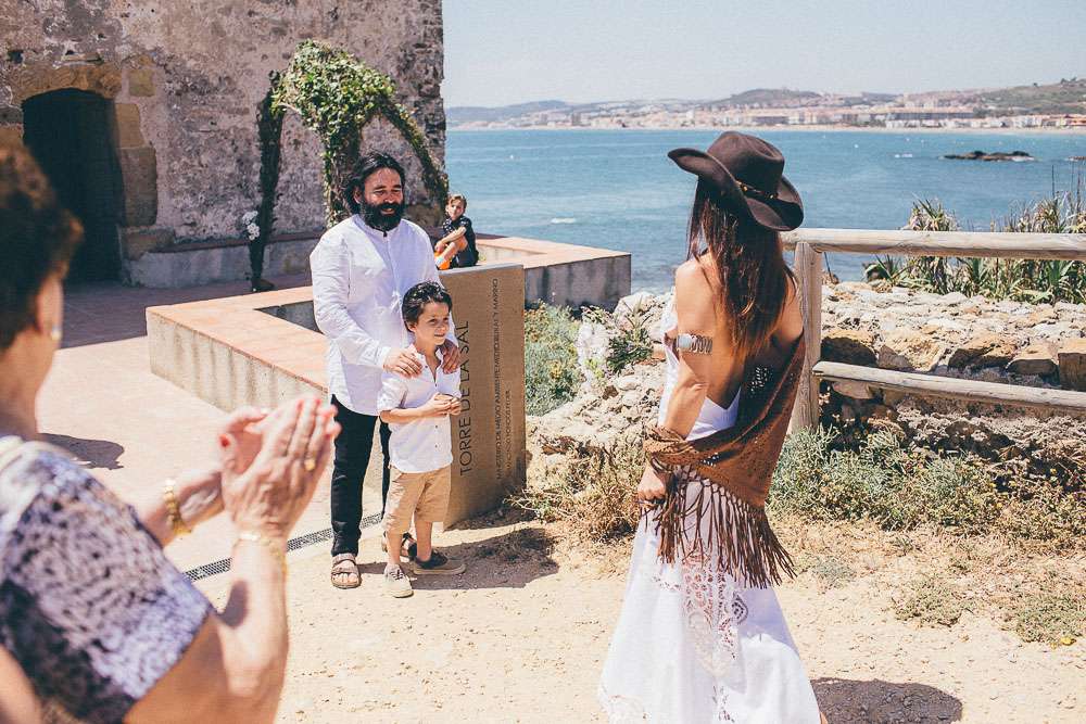 The ceremony was held at ‘Torre la Sal’, an ancient Moorish lookout tower on the beach. “My favourite part of the wedding was as I walked alone with my bouquet made of daises to get married! As I walked the 80 metres to the tower I could see everyone waiting for me and I was really nervous. But from around 20 metres away I saw my groom and son waiting for me. I looked at his eyes, he was amazing. His eyes were shinning and full of love, and then all the nerves flew away and I began to really enjoy the day!”