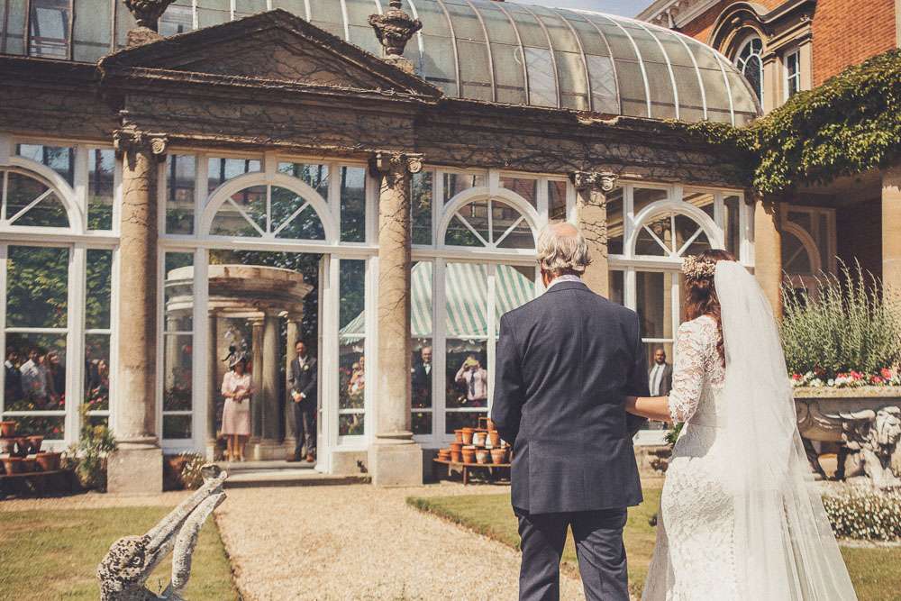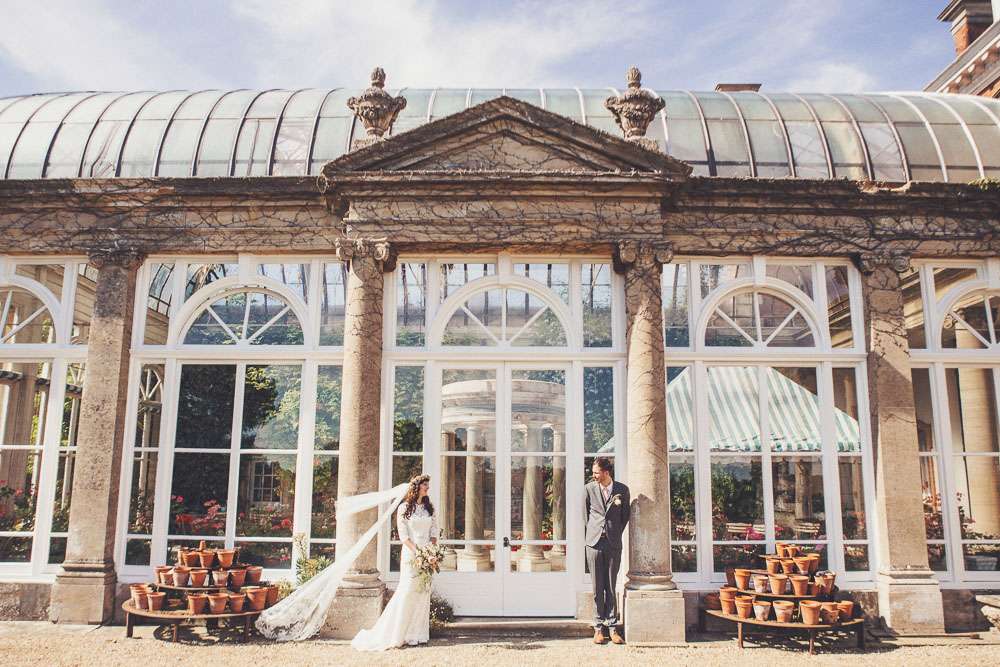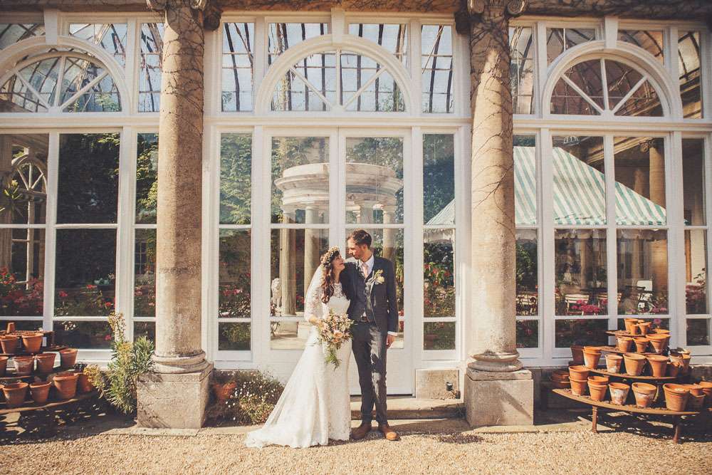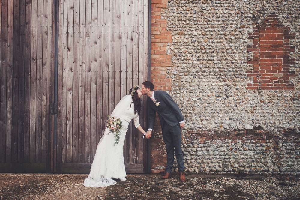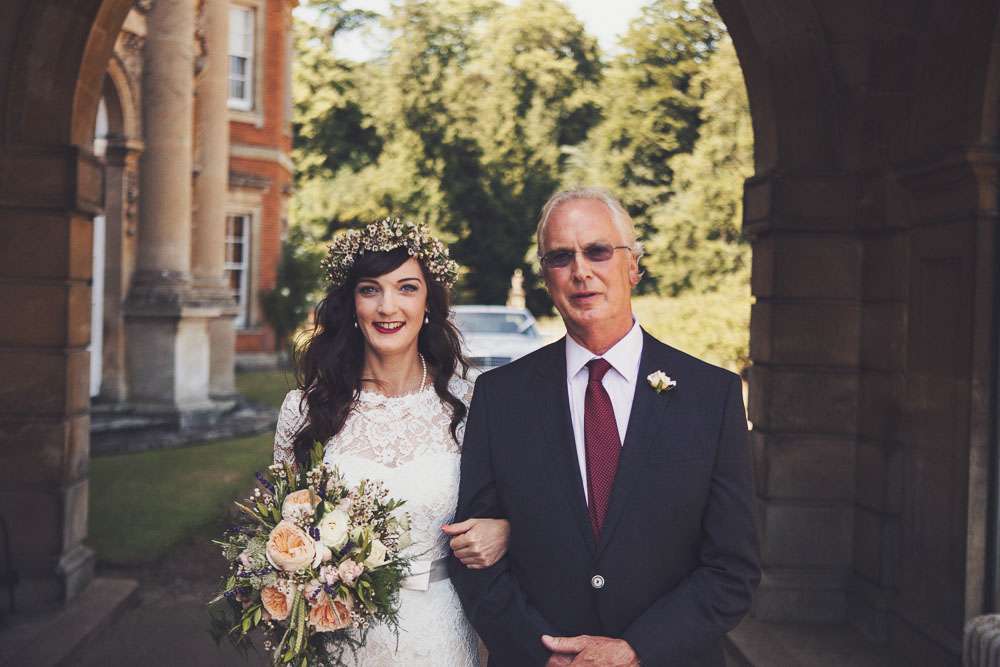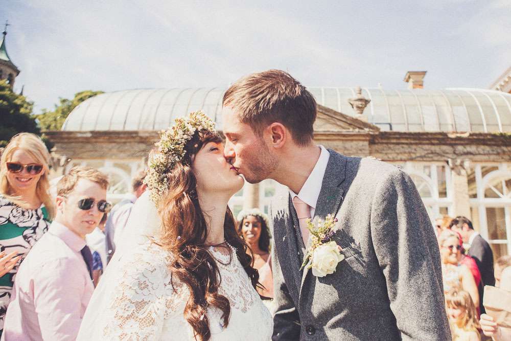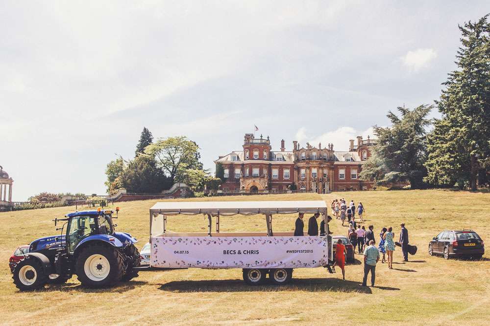 Becs and Chris were married at The Winter Garden at Sennowe Park, Norfolk. They hosted their reception in a tipi on the bride’s parent’s farm. “We always said that when we got married we wanted a festival feel”, said the bride. “Festival for us meant relaxed vibes, happy music and street food! We love food and that was pretty much the most important bit for us. We got Manjit and Fish& to drive down from Leeds because we love their award-winning food so much! I guess it’s quite unusual to have Gujarati food at a non-Indian wedding but we love curry and Manjit’s is incredible. As is Fish& – we had three types batters for our fish pieces! Trumpet & Crumpet provided amazing canapés and delicious British desserts for us.”