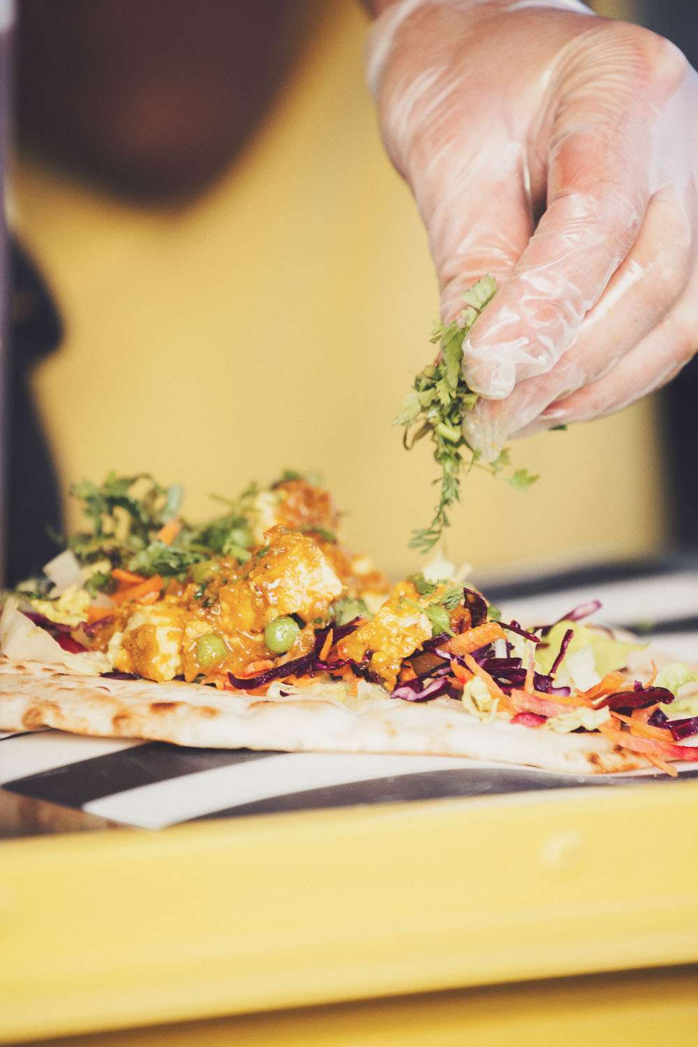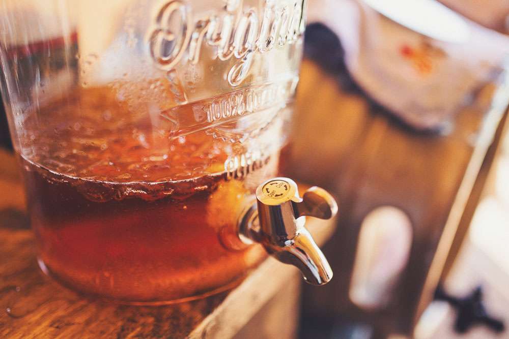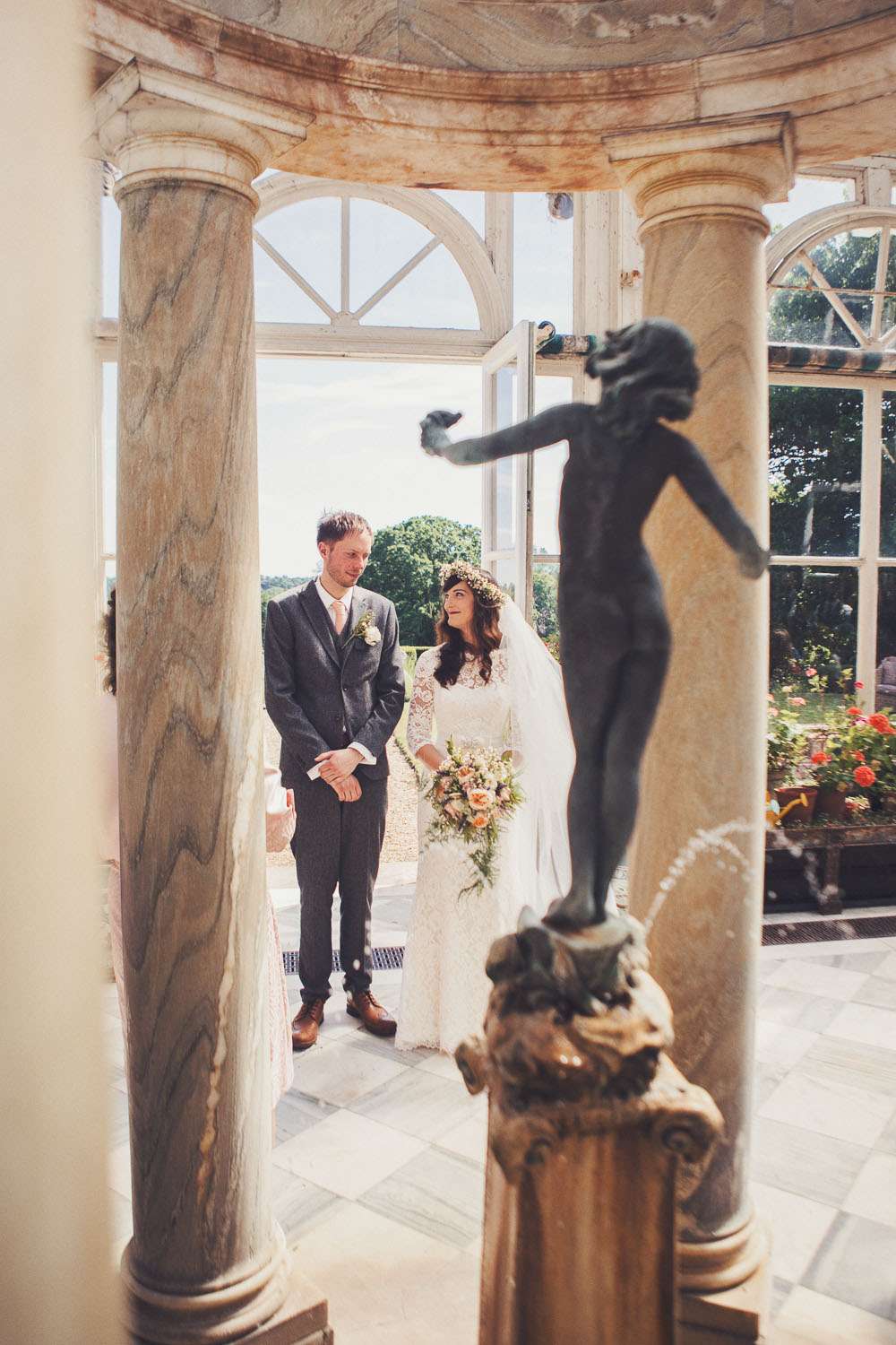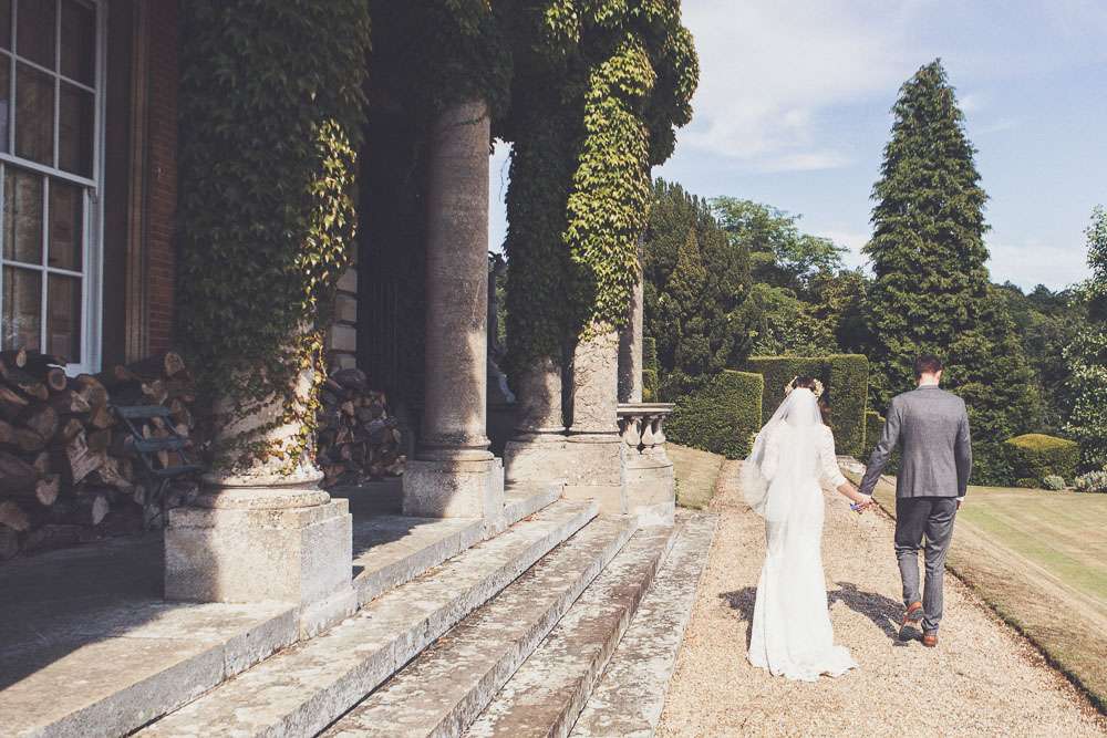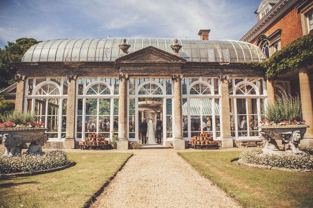 Becs and Chris were married at The Winter Garden at Sennowe Park, Norfolk. They hosted their reception in a tipi on the bride’s parent’s farm. “We always said that when we got married we wanted a festival feel”, said the bride. “Festival for us meant relaxed vibes, happy music and street food! We love food and that was pretty much the most important bit for us. We got Manjit and Fish& to drive down from Leeds because we love their award-winning food so much! I guess it’s quite unusual to have Gujarati food at a non-Indian wedding but we love curry and Manjit’s is incredible. As is Fish& – we had three types batters for our fish pieces! Trumpet & Crumpet provided amazing canapés and delicious British desserts for us.”