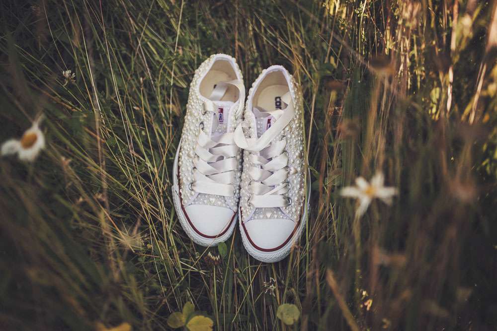 Becs’ gorgeous dress came from White Rose Bridal and she added the sleeves to the original design. She wore is with customised pearl beaded Converse which she had made by Everything Sparkles. “Both me and my bridesmaids wore beaded customised Converse. Since the reception was on grass and we’re sensible girls we wanted to be comfortable and a bit different. We loved them!”