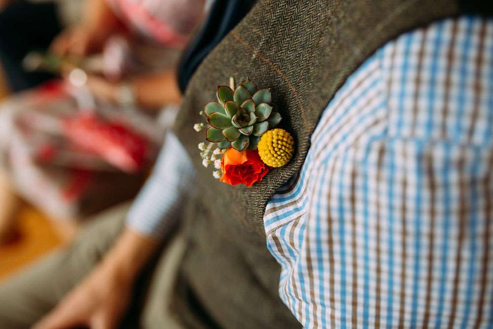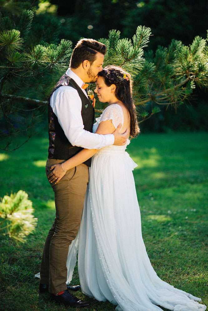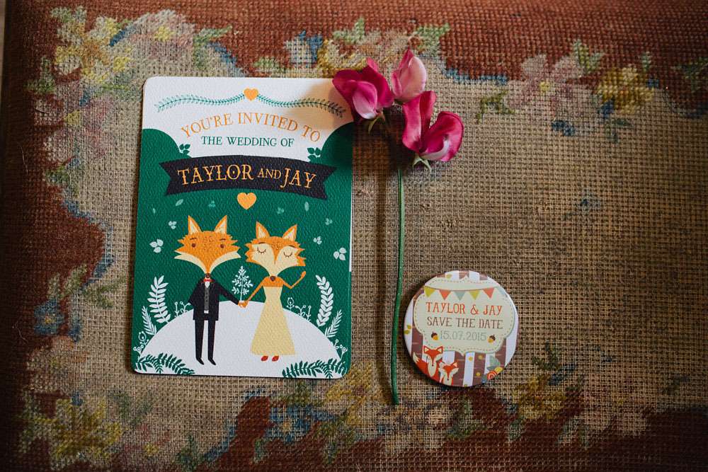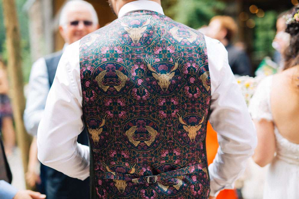 “Jay proposed to me on the threshold of our newly purchased house with a rather large beautiful porcelain fox head ring from And Mary“, began the bride. “It was a fantastic ring but we did have to downsize to a smaller more practical rose gold fox from Kyle Can. The ring was a response to my love of nature and British wildlife. Foxes, badgers, birds etc are a design featured throughout our house and play a big part of our lives so it made sense to bring this part of our personality and life together into our wedding too.”