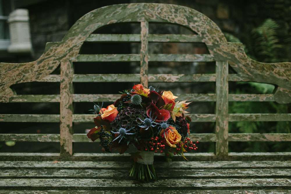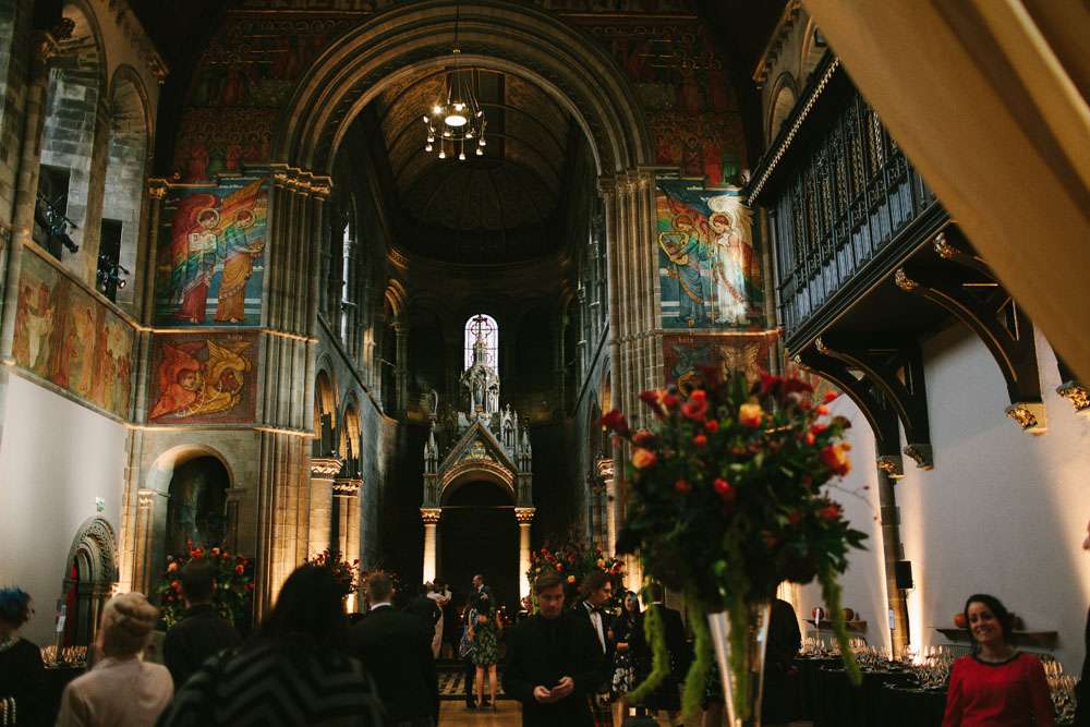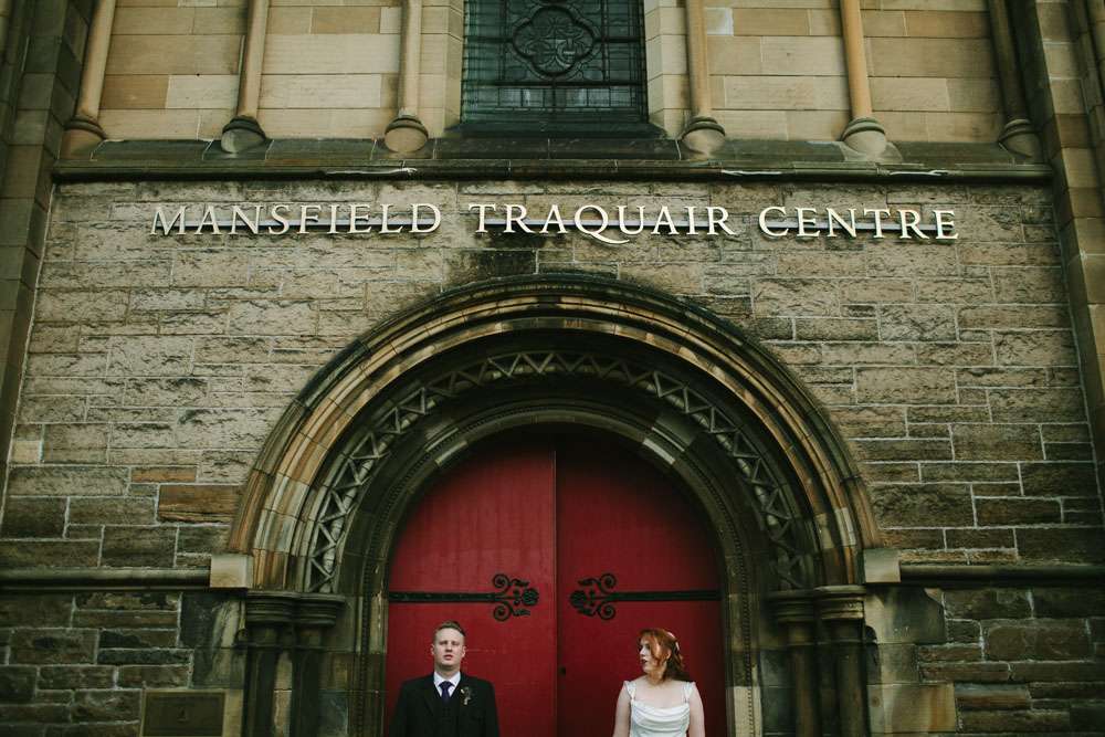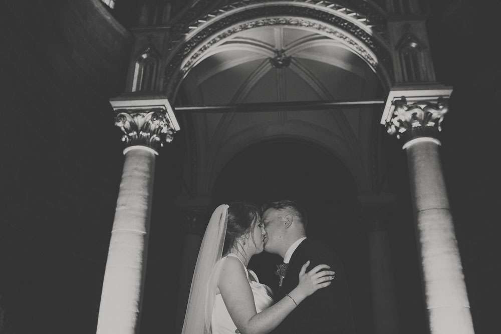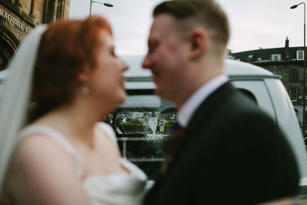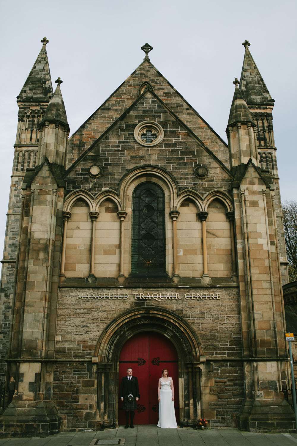 Both the ceremony and reception were held at the dramatic setting of Mansfield Traquair, a really unique heritage venue in the city. “I think a lot of people wouldn’t want to get married on Halloween but we couldn’t think of anything better!” she continued. “We completely embraced the theme too. There were pumpkins everywhere and we even asked guests on our invites to BYOP (Bring Your Own Pumpkin!) to help decorate the venue. We had some amazing designs! We had more pumpkins and candles to add to the décor as well as a bucket with apples so the guests could go bobbing for apples! The moss skulls for the top table were just incredible. The were made by Planet Flowers who did all our florals and they went completely above and beyond and provided far more in than they charged us for from the arrangements to the little details like themed Halloween drinks for the guests.”