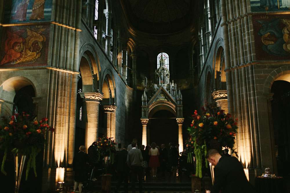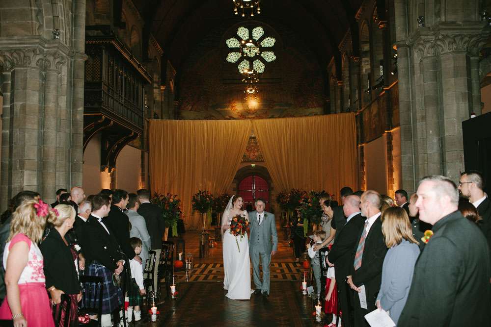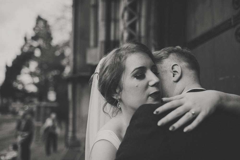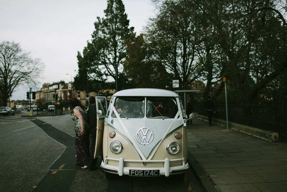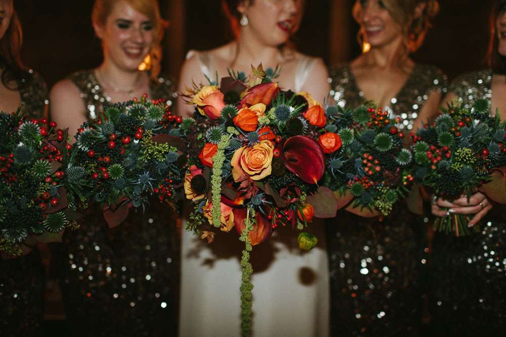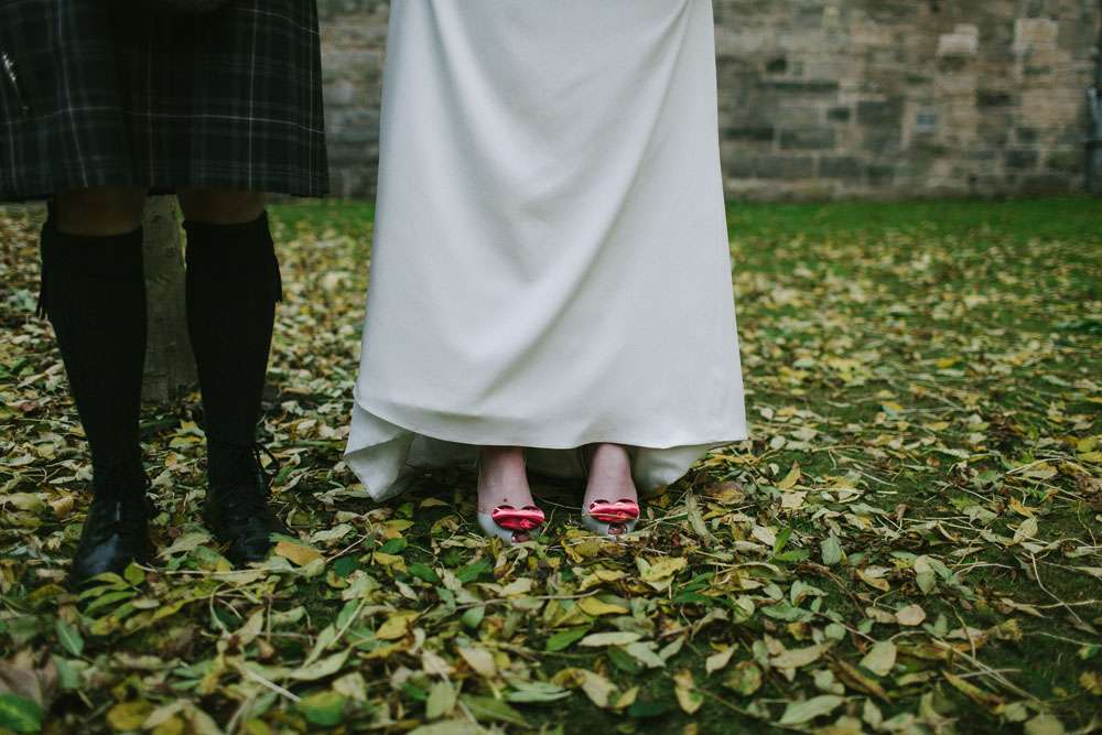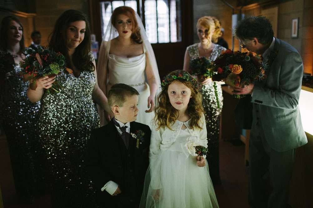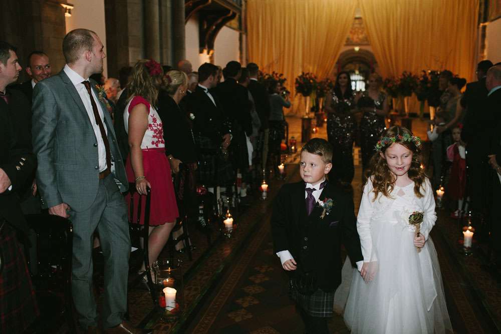 Both the ceremony and reception were held at the dramatic setting of Mansfield Traquair, a really unique heritage venue in the city. “I think a lot of people wouldn’t want to get married on Halloween but we couldn’t think of anything better!” she continued. “We completely embraced the theme too. There were pumpkins everywhere and we even asked guests on our invites to BYOP (Bring Your Own Pumpkin!) to help decorate the venue. We had some amazing designs! We had more pumpkins and candles to add to the décor as well as a bucket with apples so the guests could go bobbing for apples! The moss skulls for the top table were just incredible. The were made by Planet Flowers who did all our florals and they went completely above and beyond and provided far more in than they charged us for from the arrangements to the little details like themed Halloween drinks for the guests.”