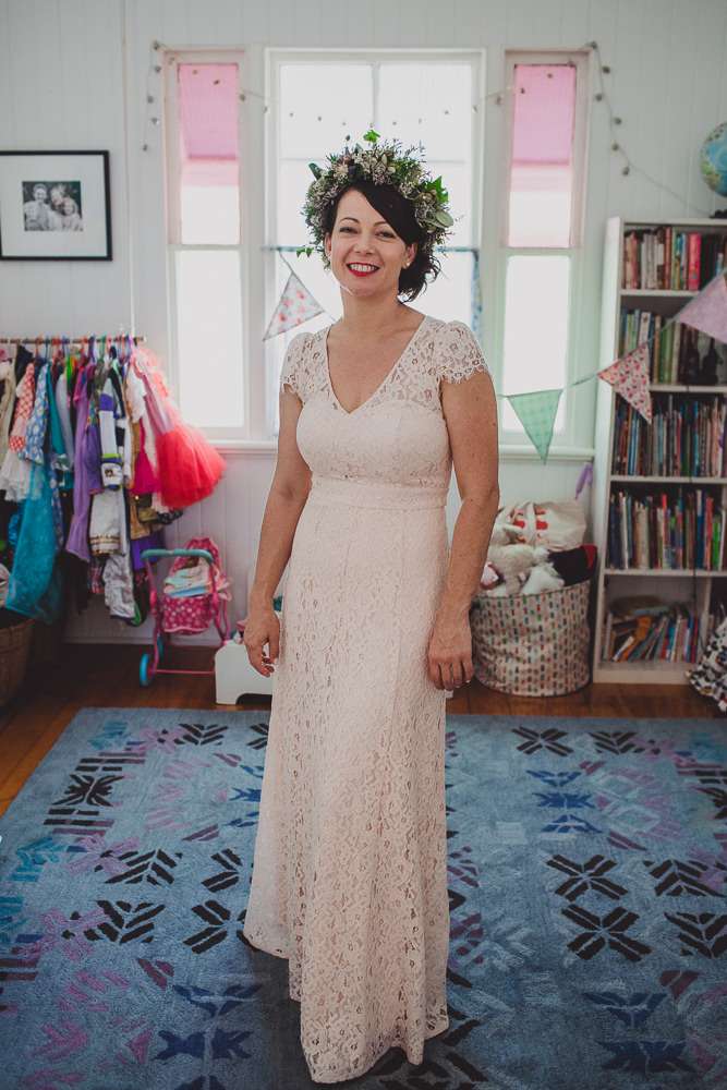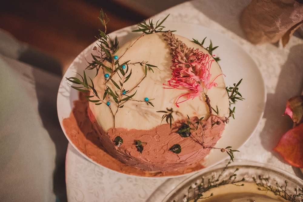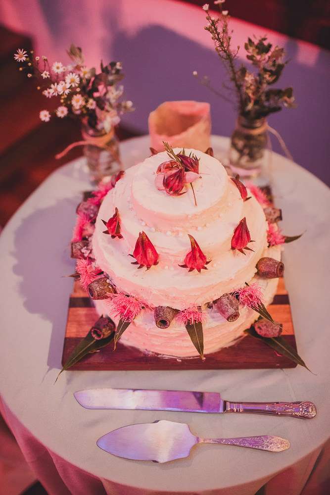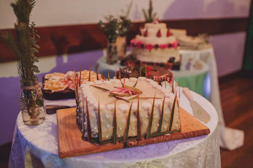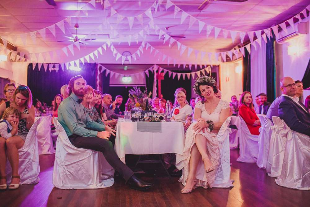 Their reception was then held at QLD Russian Community Centre. “Our ‘theme’ was a bush dance hall with lots of bunting”, they explained. “We had 150 metres of bunting, DIY flower arrangements and table decorations. The cakes, fairy lights, signage and drinks were also all homemade.”