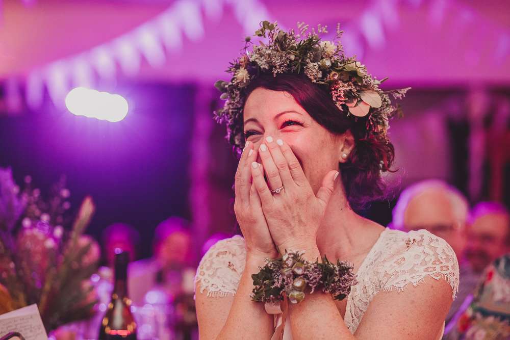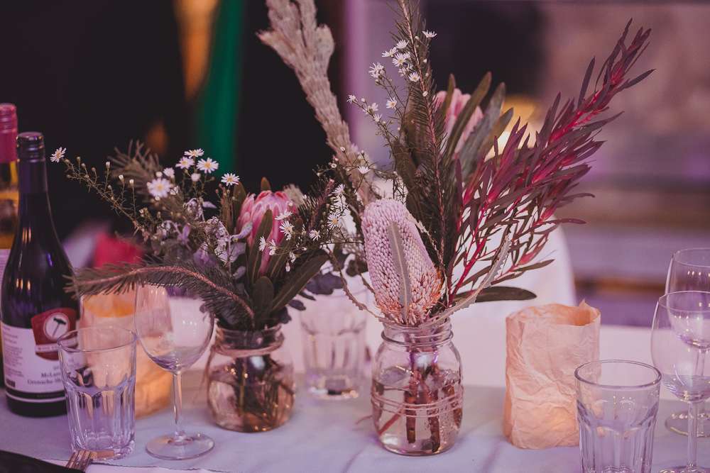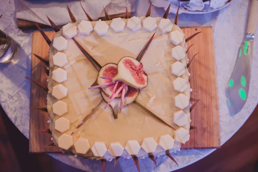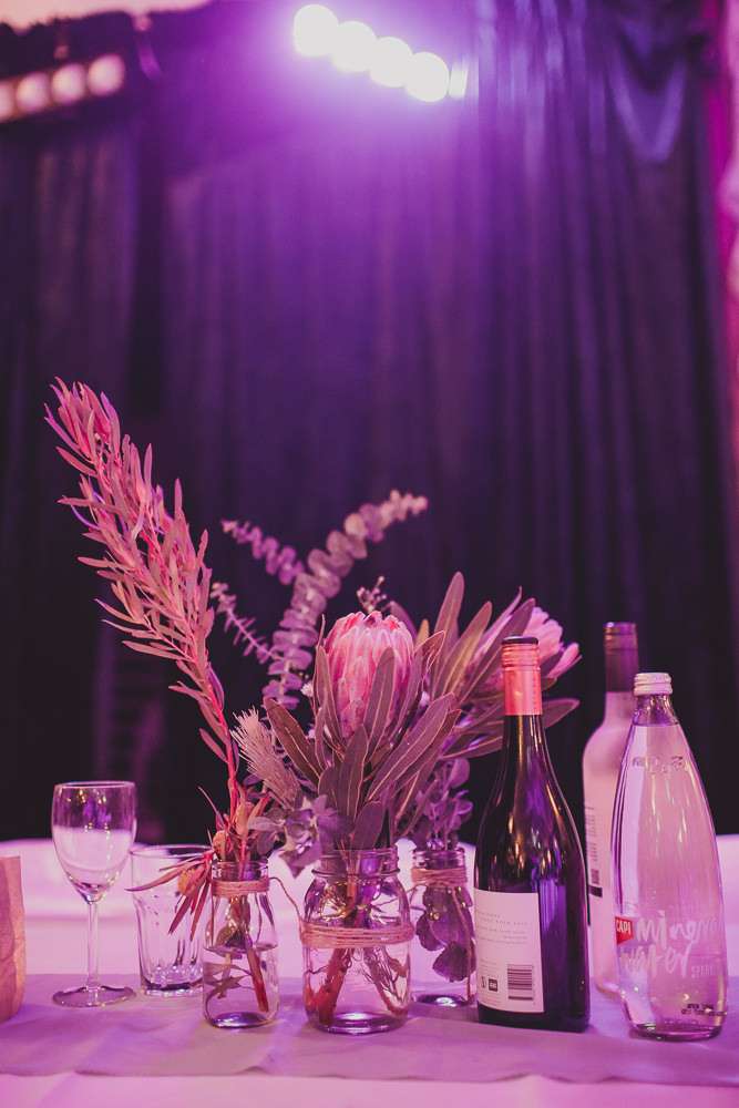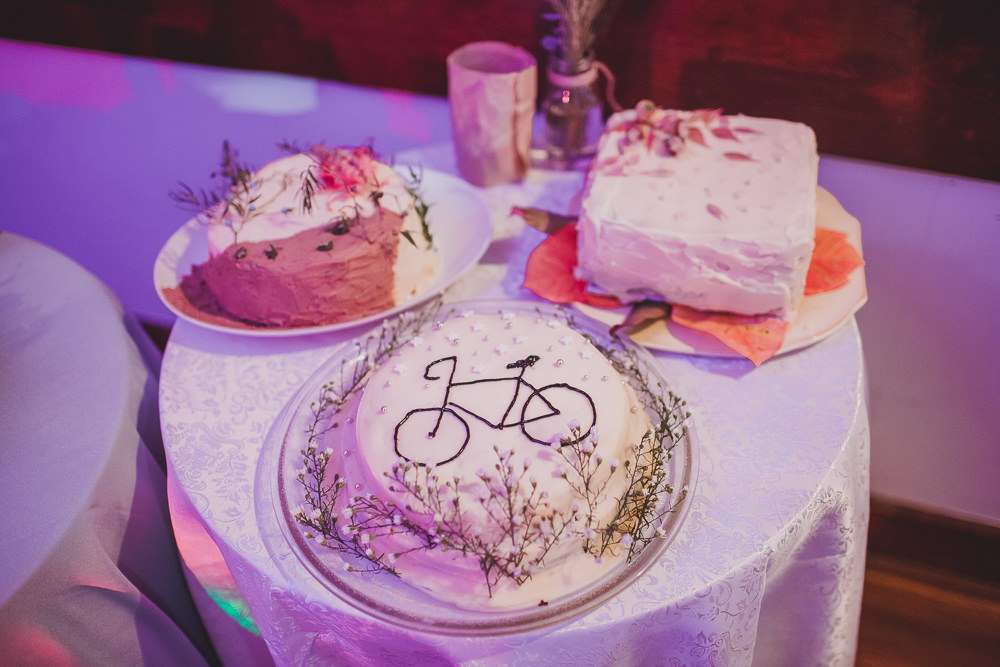 Their reception was then held at QLD Russian Community Centre. “Our ‘theme’ was a bush dance hall with lots of bunting”, they explained. “We had 150 metres of bunting, DIY flower arrangements and table decorations. The cakes, fairy lights, signage and drinks were also all homemade.”