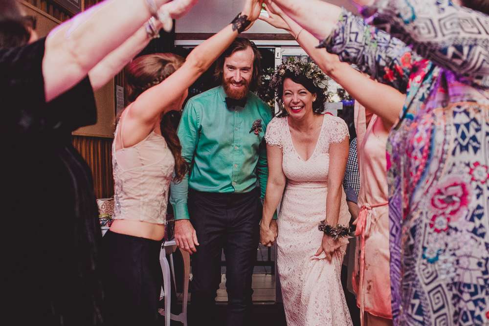 “We really wanted to respect the ceremony of showing our love and commitment in front of our friends and family”, they said, “so we took seriously the ritual of the ceremony but then after that… It was party time. The ceremony was officiated by our dear friend Alan at The Gardens Club. We wrote our own vows and Alan wrote the script for the ceremony.”