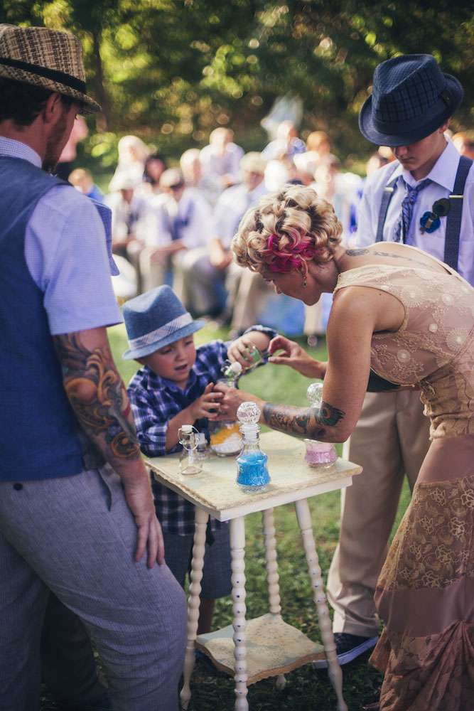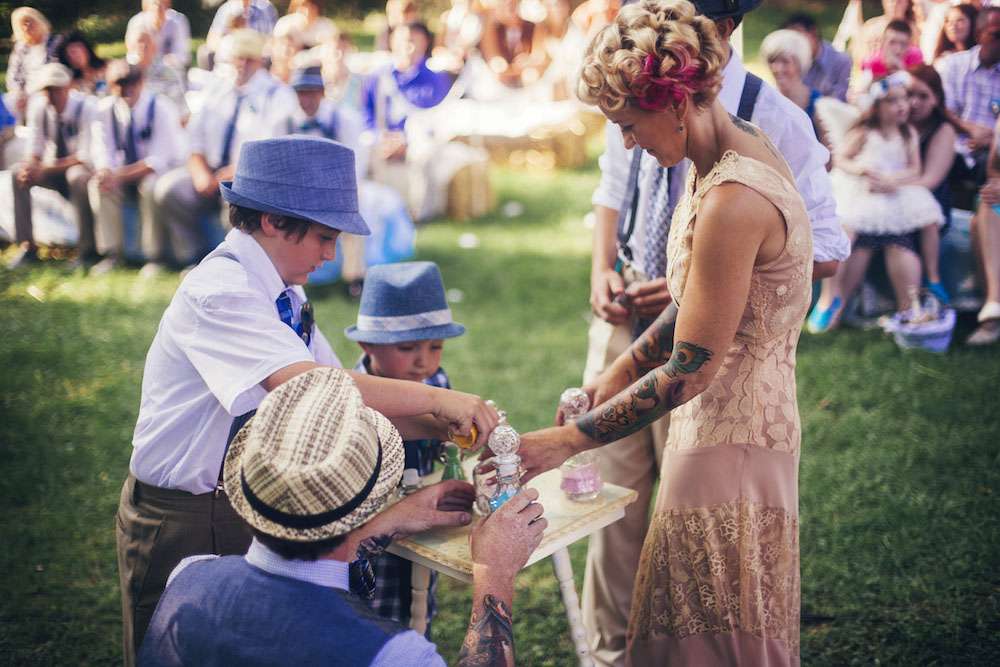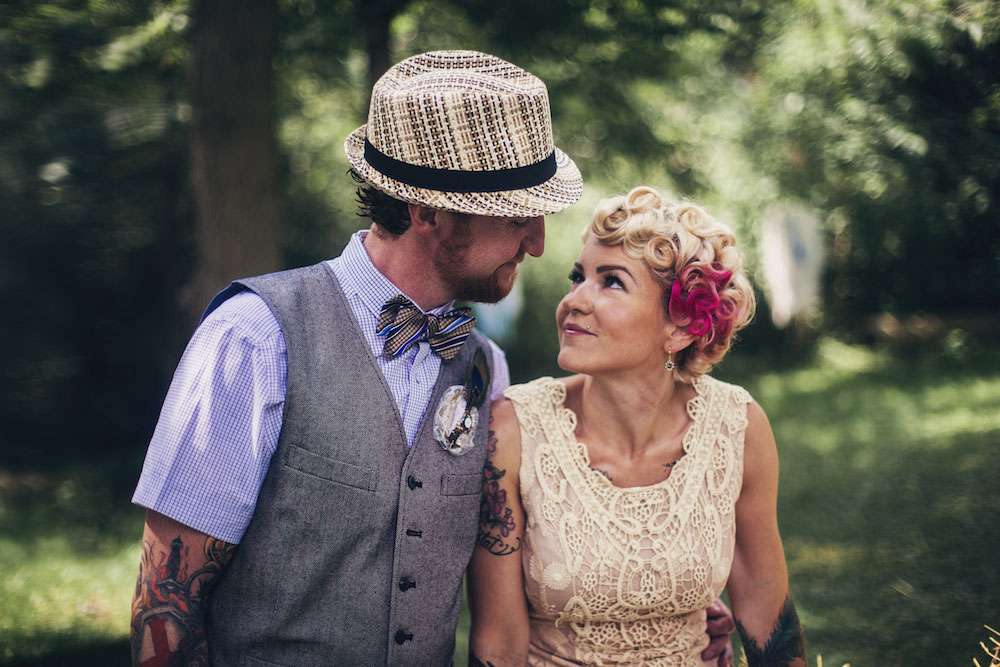 When it came to organising their wedding, Jess and Tony had one thing in mind – family. This was their second time around (yes, they married each other twice!!) and this time they wanted to do things completely on their own terms. “Our wedding was shabby, ethereal, vintage, pin-up, country and quirky”, explained the bride. “Basically, it was anything but normal!”