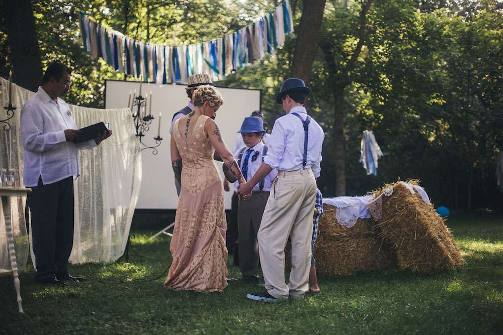 “What made it even less normal was that this was actually our second wedding…. to each other! It wasn’t just a vow renewal, it was a wedding. We were really young when we got married in 2000 and had a very traditional wedding that neither of us really felt a part of. Life took over and our marriage fell apart after 13 years. We separated and worked really hard through some excruciating stuff and this was a celebration of new life, new family, and is as our authentic selves. We have 3 kids and they were part of our wedding. This was us doing the wedding the way we wished it had always been.”