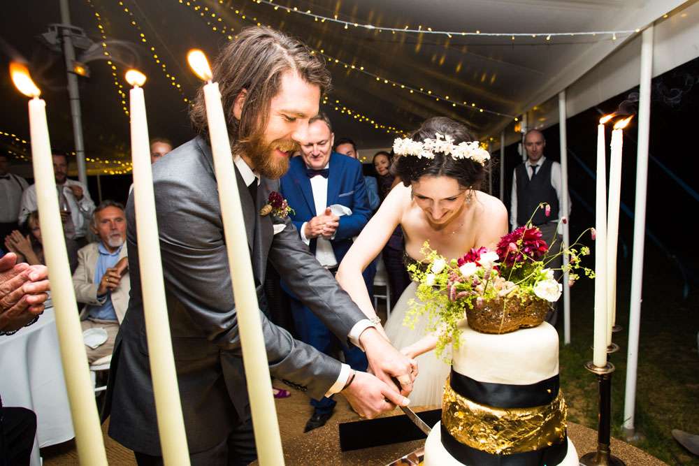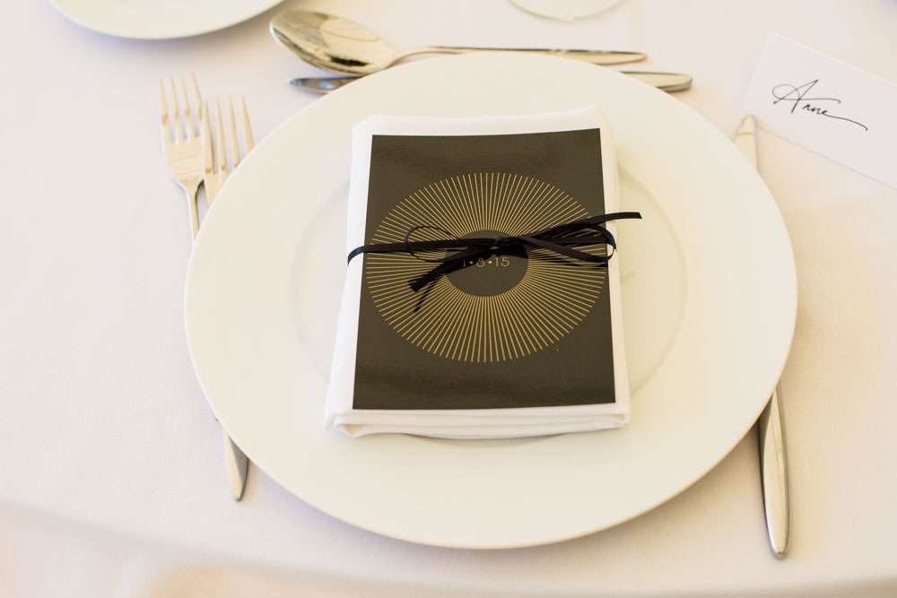 “The main theme was the 1920s”, said Emma. “Our colour scheme was white, black and gold but we also gave the day a modern twist. We took cues from art deco and stripped it back to clean lines, and added a softer colours through flowers. The rural French château itself suited our theme too as it was white, clean and unfussy. We removed anything from the wedding that didn’t speak to our core values and we jettisoned anything that is just hanging on for traditions sake. We considered what was important to us, and tried to transmit that with each element.”