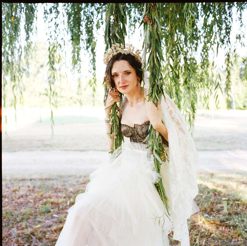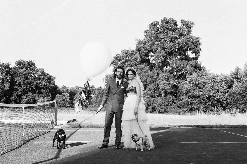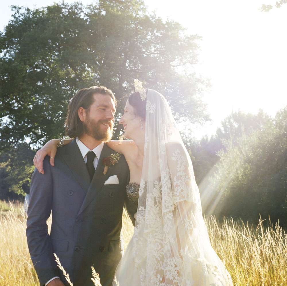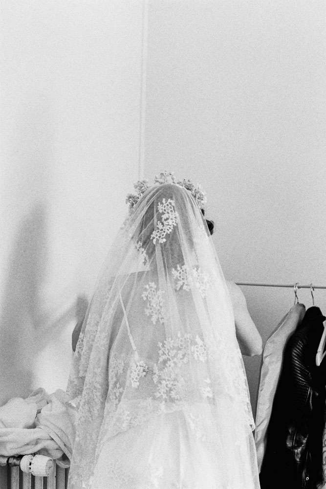 The bride wore a corset from Agent Provocateur with a tulle skirt made for her by a friend who is a designer. Her ceremony headpiece was an antique wax crown from the 1940s and her amazing veil was made in 1890. After the ceremony she changed into a Jenny Packham crystal headpiece which she rented, instead of bought, in order to save money. “Having my dress made for me by my incredibly talented (genius!) designer friend was one of the best things about planning the wedding. It’s not every day you get a couture dress and I really did feel totally beautiful, and like myself (most importantly).”