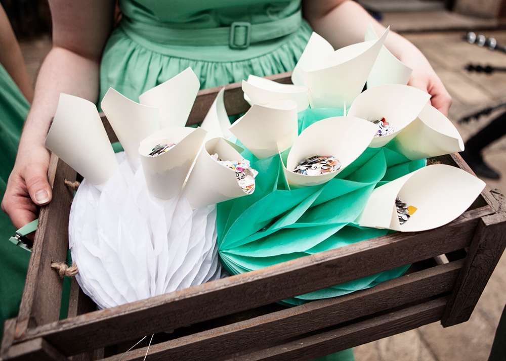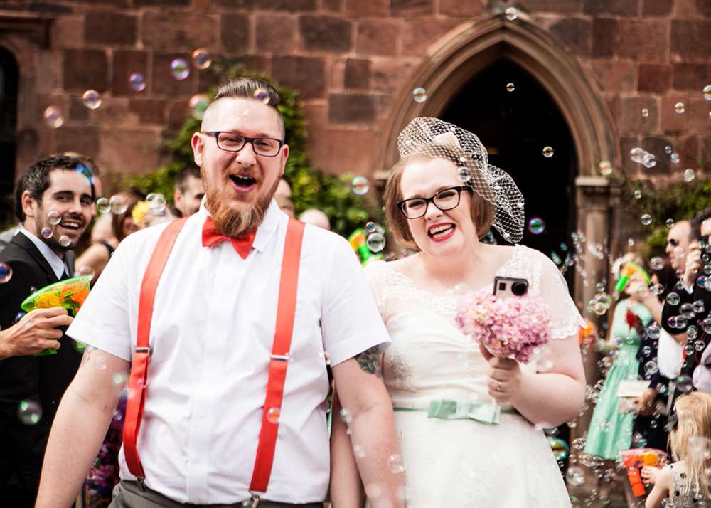 Amy and Rob spent just £4000 on their quirky film inspired wedding. They did a lot of things themselves and saved the pennies by making unconventional choices, like serving fish n chips for the main meal.