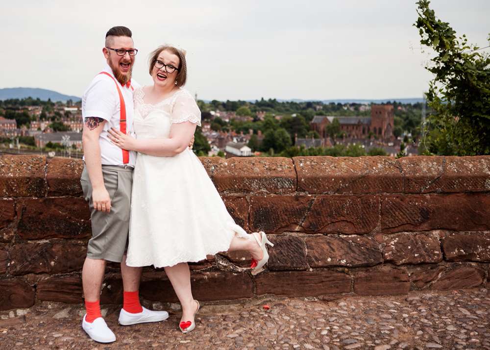 “While a lot of weddings are done on a budget these days, but we think the casual element really helped make our day different”, she continued. “Rob would never have felt comfortable wearing a traditional suit, so shorts were an obvious choice. Rob also wanted to show off his tattoos (who wouldn’t?!) by having short sleeves. My shorter style wedding dress fitted into this too. I would have felt uncomfortable in big, more traditional gown.”