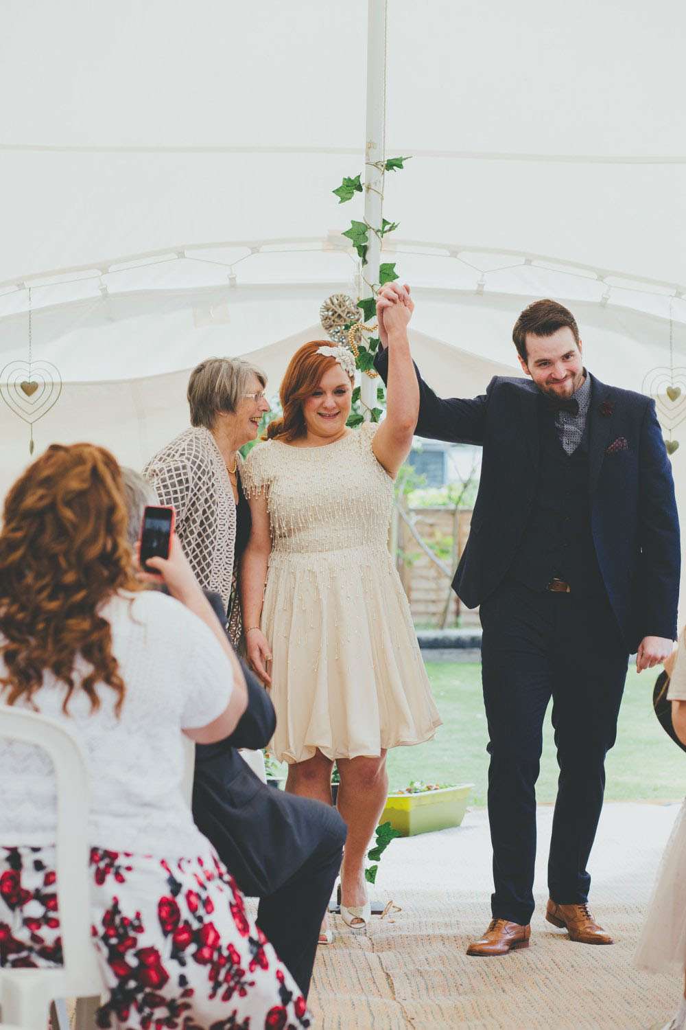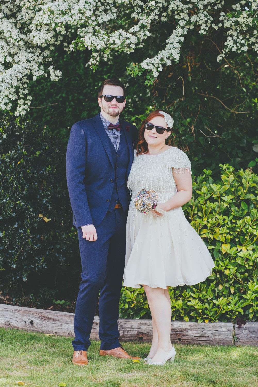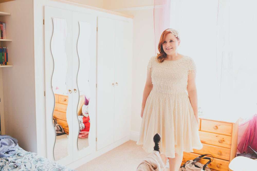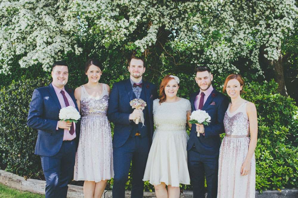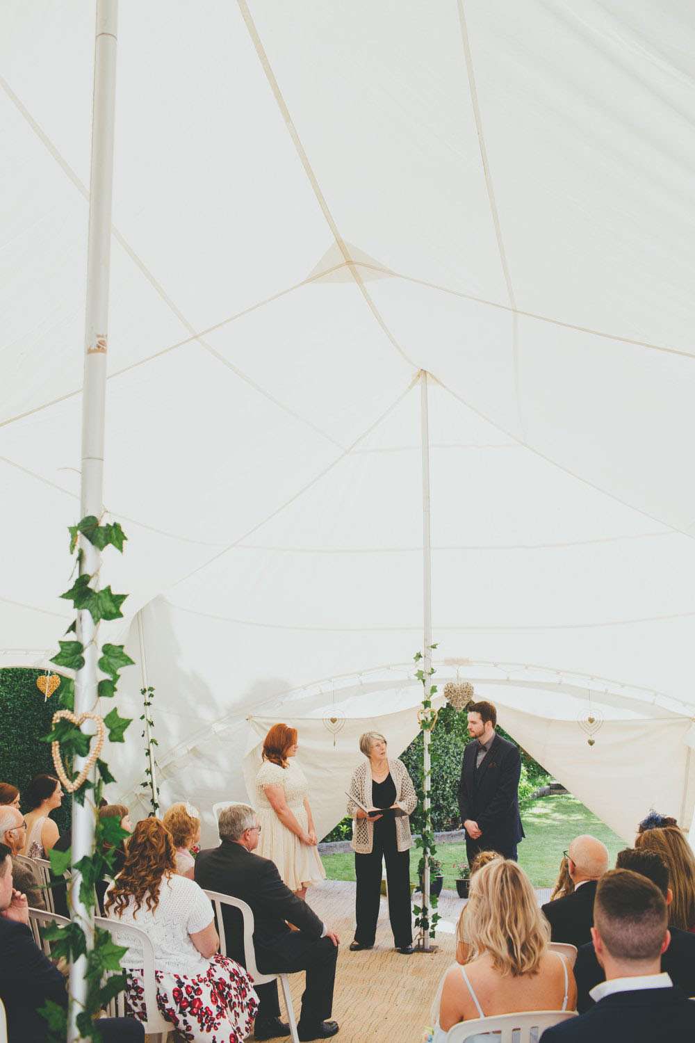 “We had a lot of trouble finding a ceremony venue we really loved and didn’t just want the standard registry office ceremony”, explained Amy. “Then we read the ‘How to plan a wedding‘ series on Rock n Roll Bride at the beginning of 2014 and it inspired the idea of having our ceremony in my parents’ back garden. It was by no means a foolproof plan, but once my parents were convinced (which didn’t actually take much doing) the ball was rolling. Since we’re both not religious a Humanist ceremony seemed like a perfect fit, and once we met Lisbeth, our celebrant, we knew we’d made the right decision. The ceremony she delivered was tailored to us, and our friends and family really enjoyed how personal it felt.”